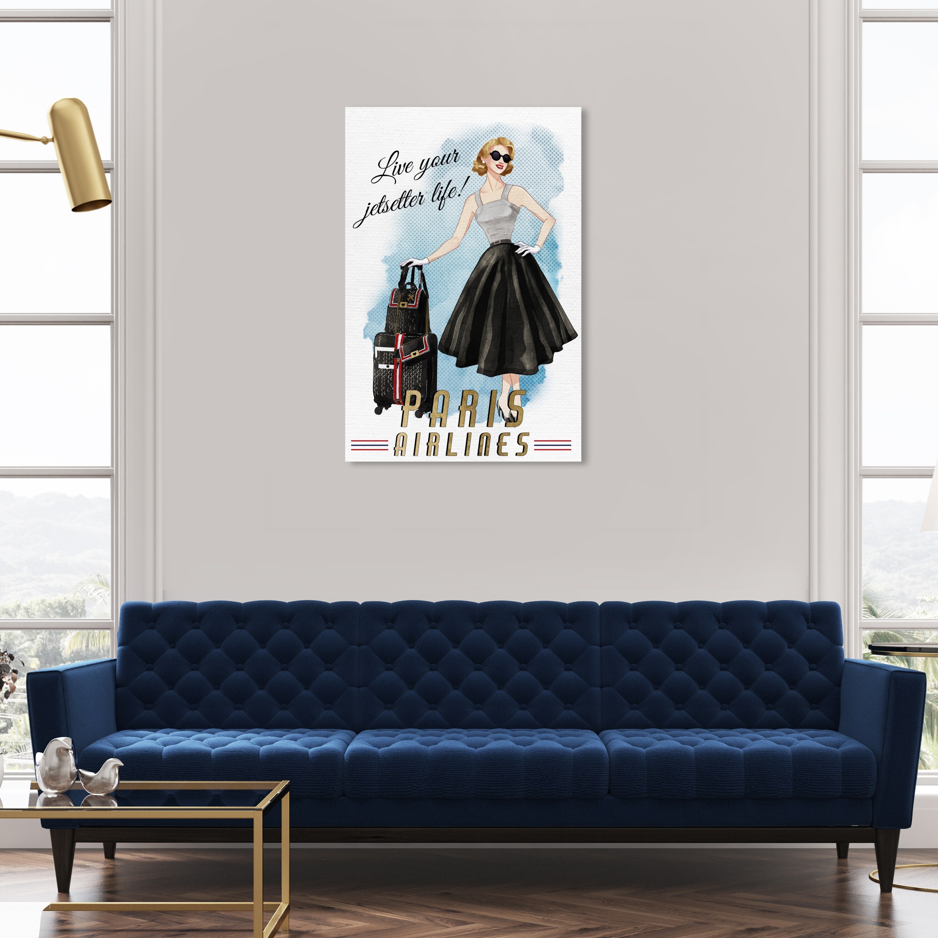 Oliver Gal 'Your Jetsetter Life' Fashion and Glam Wall Art Canvas Print Travel Essentials - Black, Blue