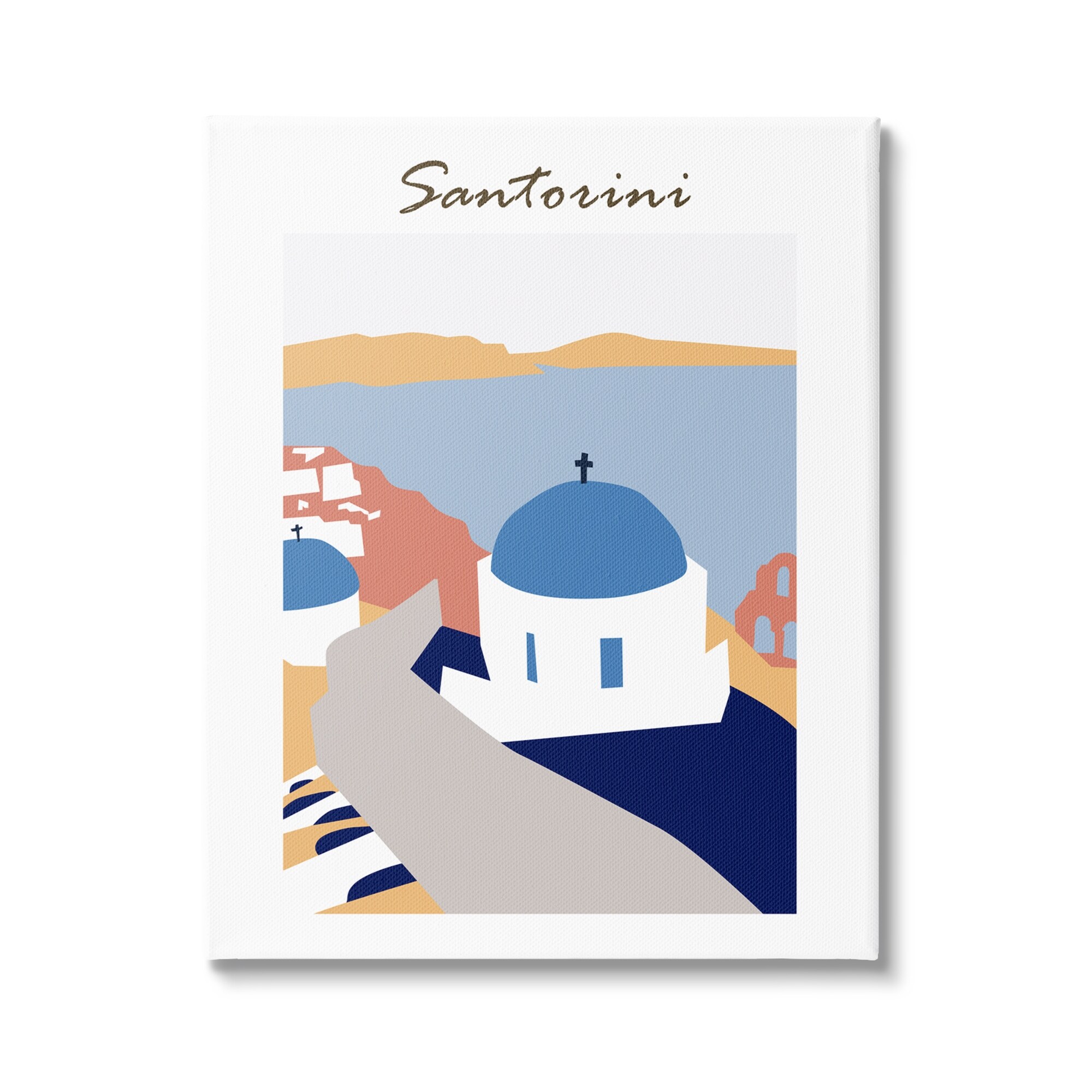 Stupell Coastal Cliff Town Santorini Minimalistic Travel Illustration Canvas Wall Art - Multi-Color