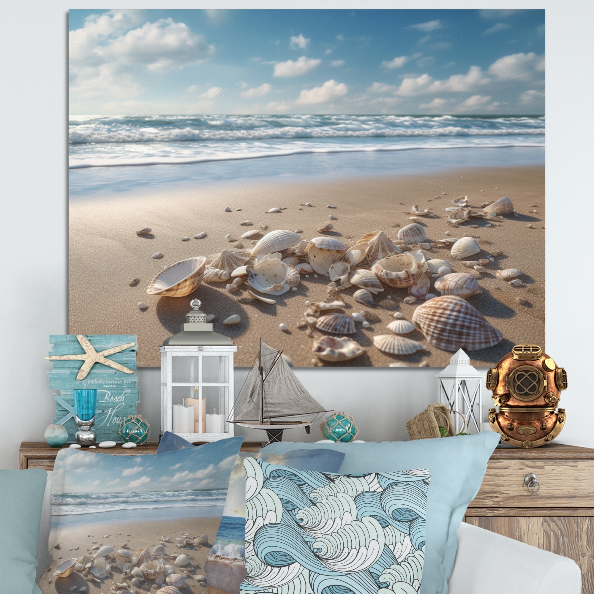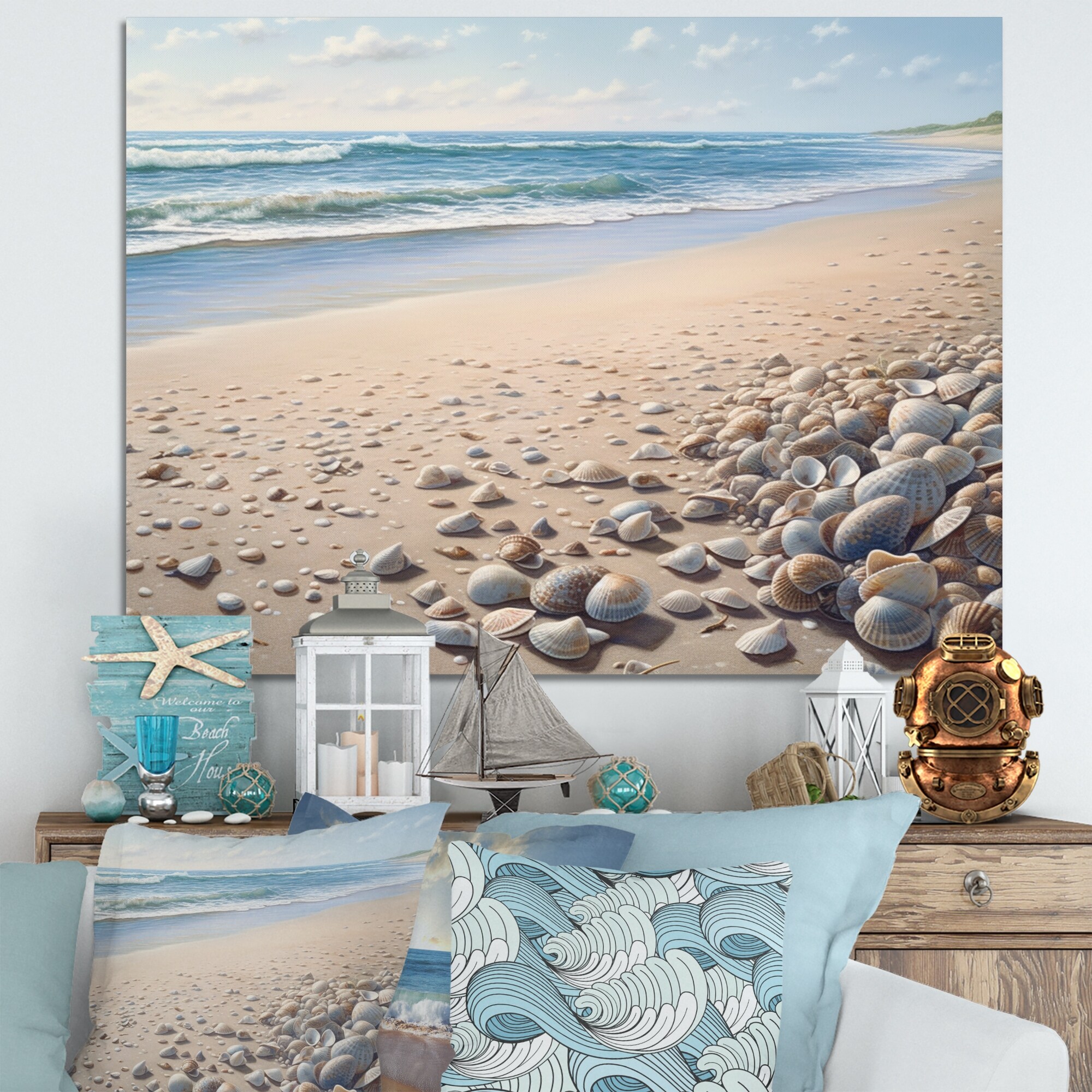 Designart "Seaside Seashell Treasures V" Modern Landscape Beach Canvas Wall Art