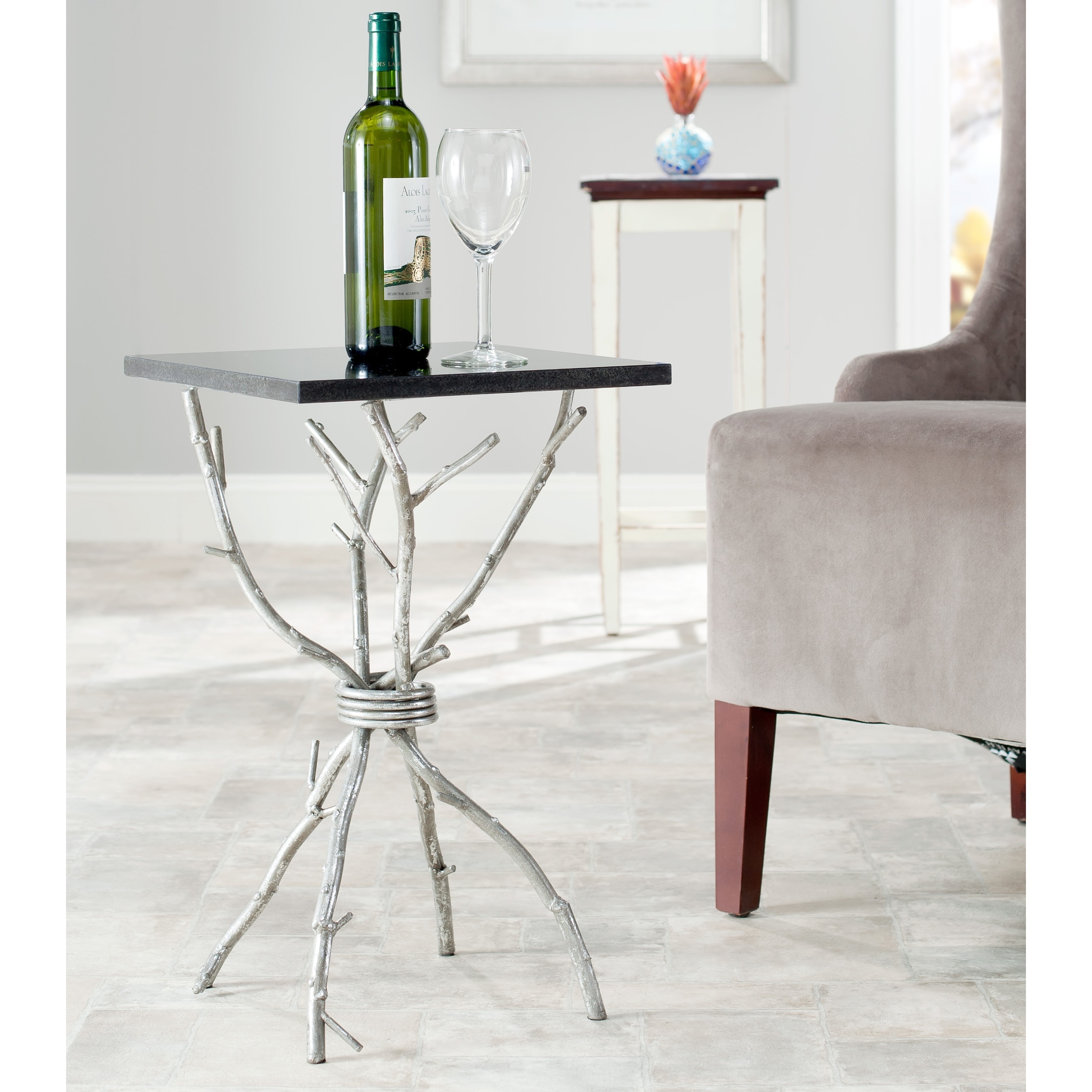 SAFAVIEH Hidden Treasures Black Granite Silver Square Accent Table - 14" x 14" x 22"