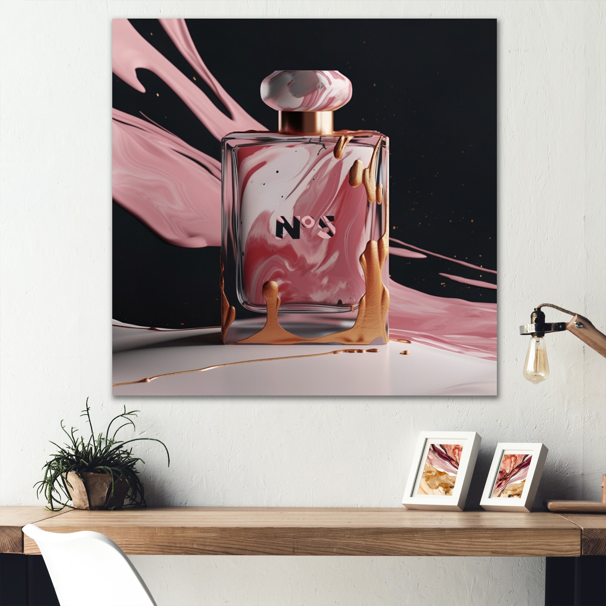 Designart "Pink Perfume Scented Treasures I" Fashion Perfume Metal Wall Art