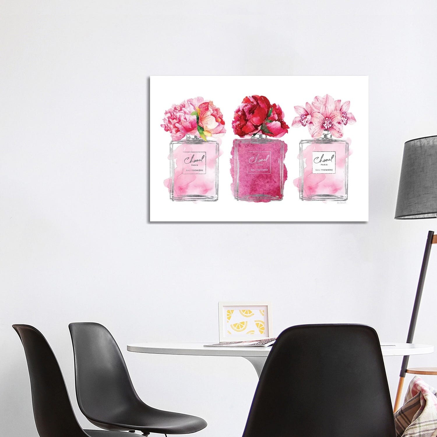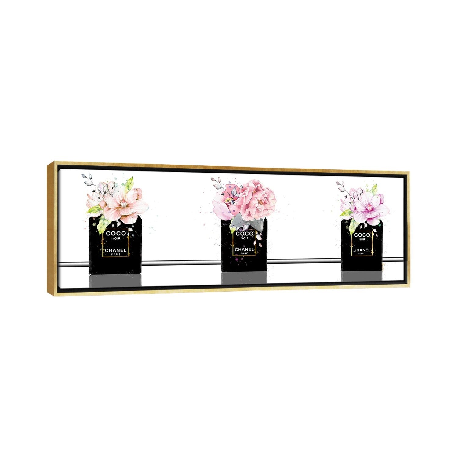 iCanvas "Black Bottles Perfume Trio With Magnolias & Roses" by Pomaikai Barron Framed Canvas Print
