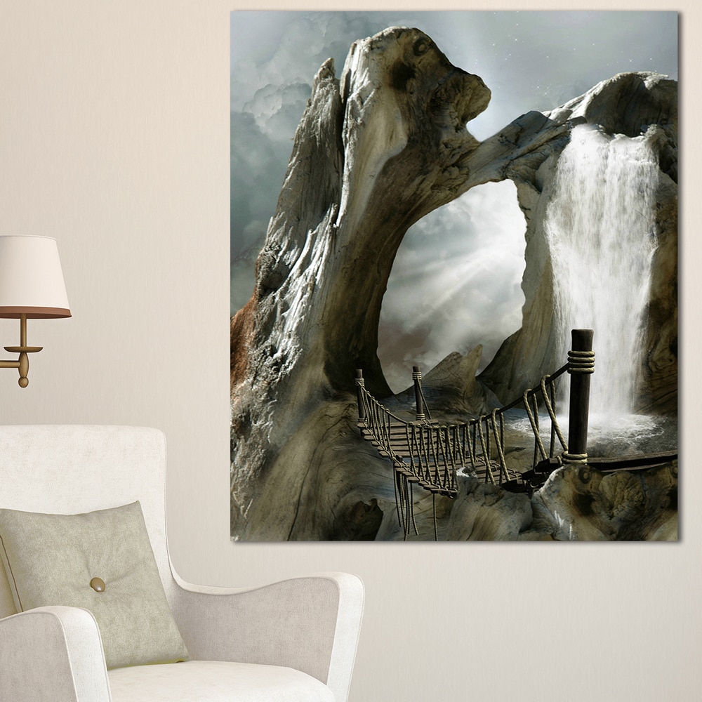 Large Trunk with Waterfall - Landscape Art Canvas Print - Brown