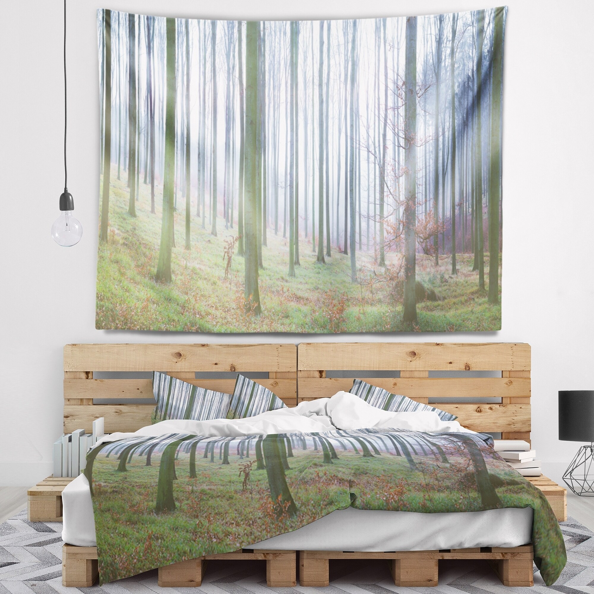 Designart 'Autumn Tree Trunks Panorama' Oversized Forest Wall Tapestry