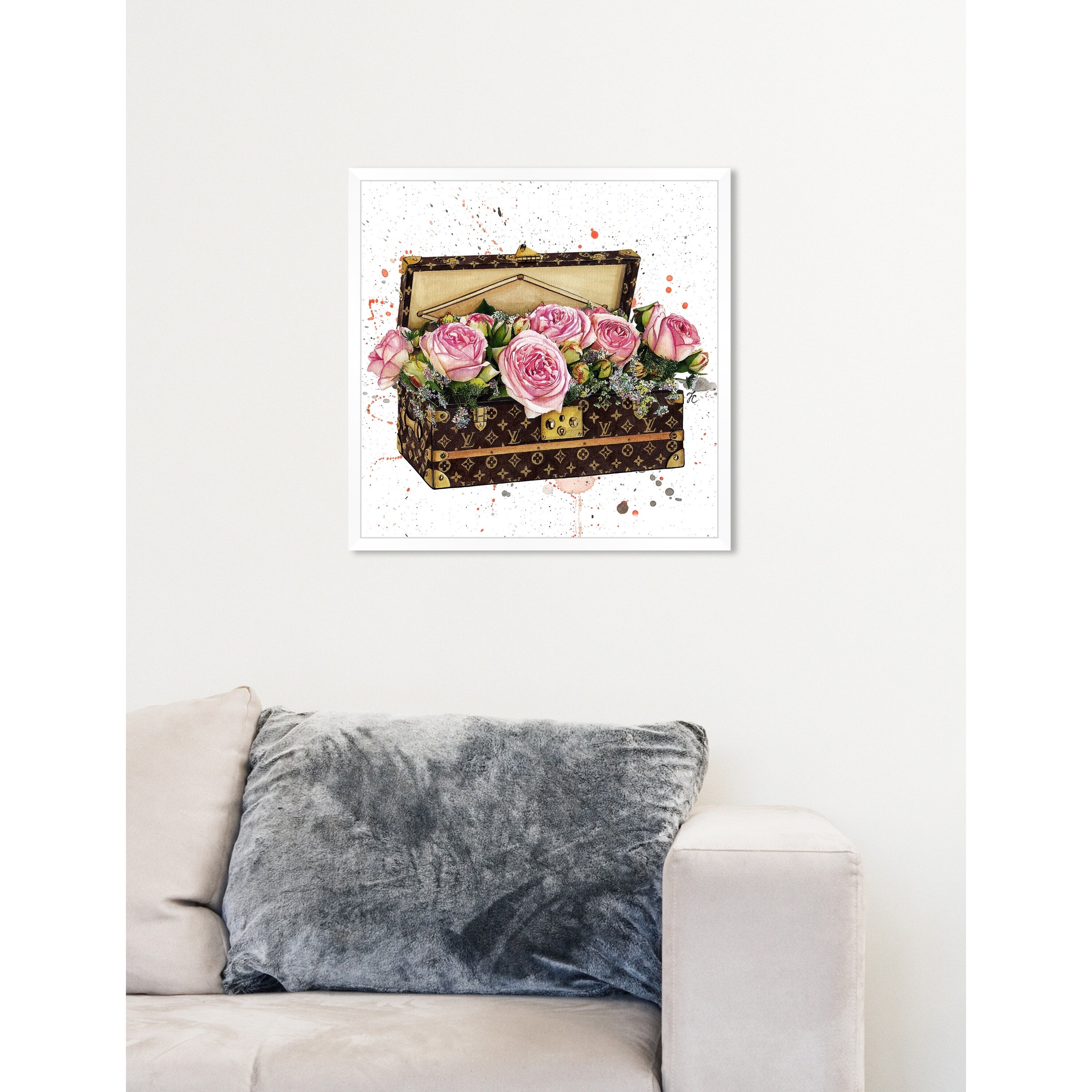 Oliver Gal 'Doll Memories - Trunk Full of Flowers' Contemporary Pink Floral Framed Wall Art Print