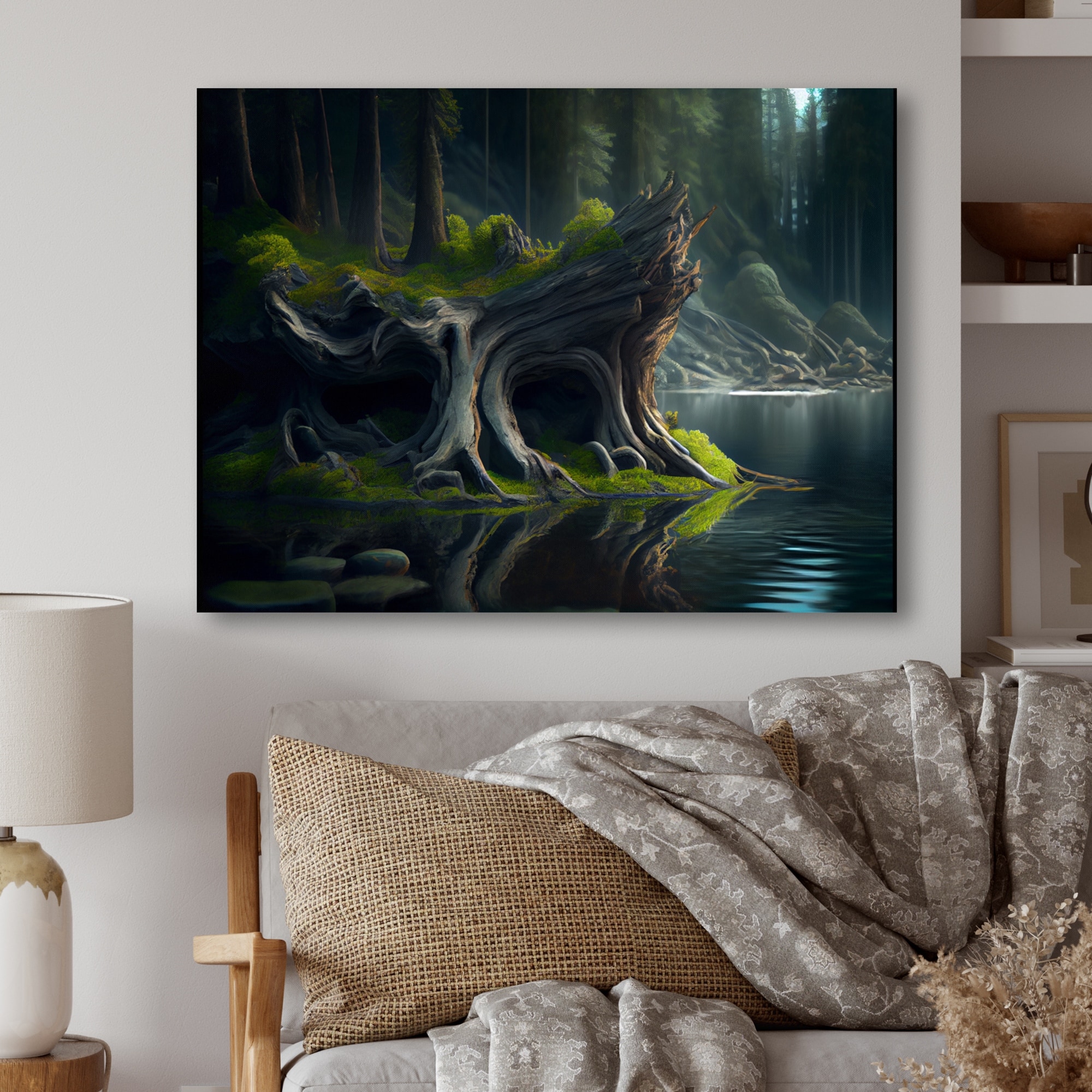 Designart "Old Majestic Tree Trunk in By the Lake II" Landscape Cottage Canvas Wall Art Print