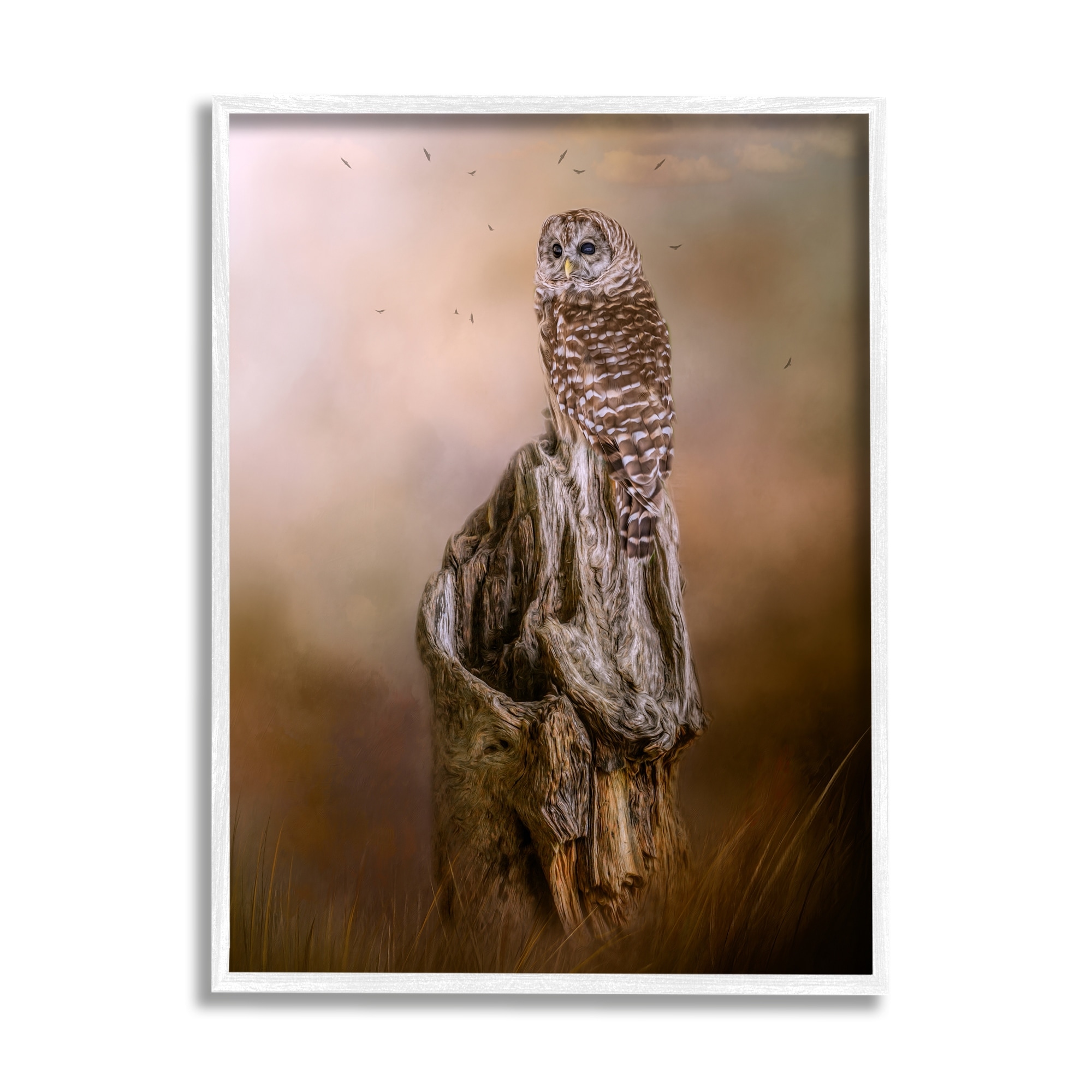Stupell Industries Barred Owl Perched Tree Trunk Nature Framed Giclee Art by Kelley Parker