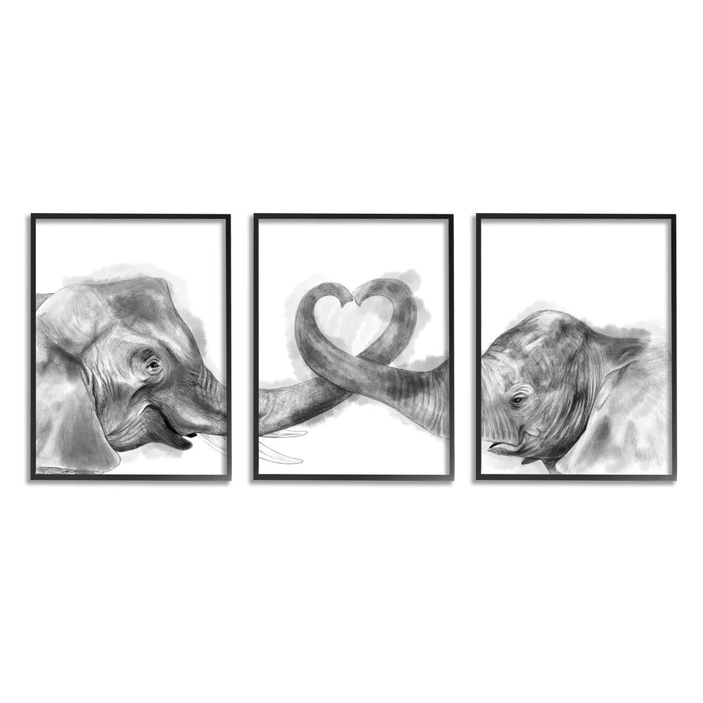 Stupell Elephant Trunk Heart Jungle Animal Illustration, 3pc Multi Piece Framed Wall Art Set - Grey
