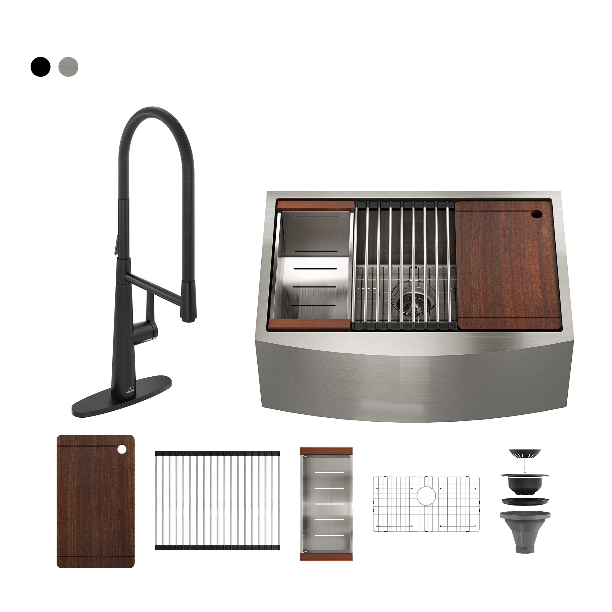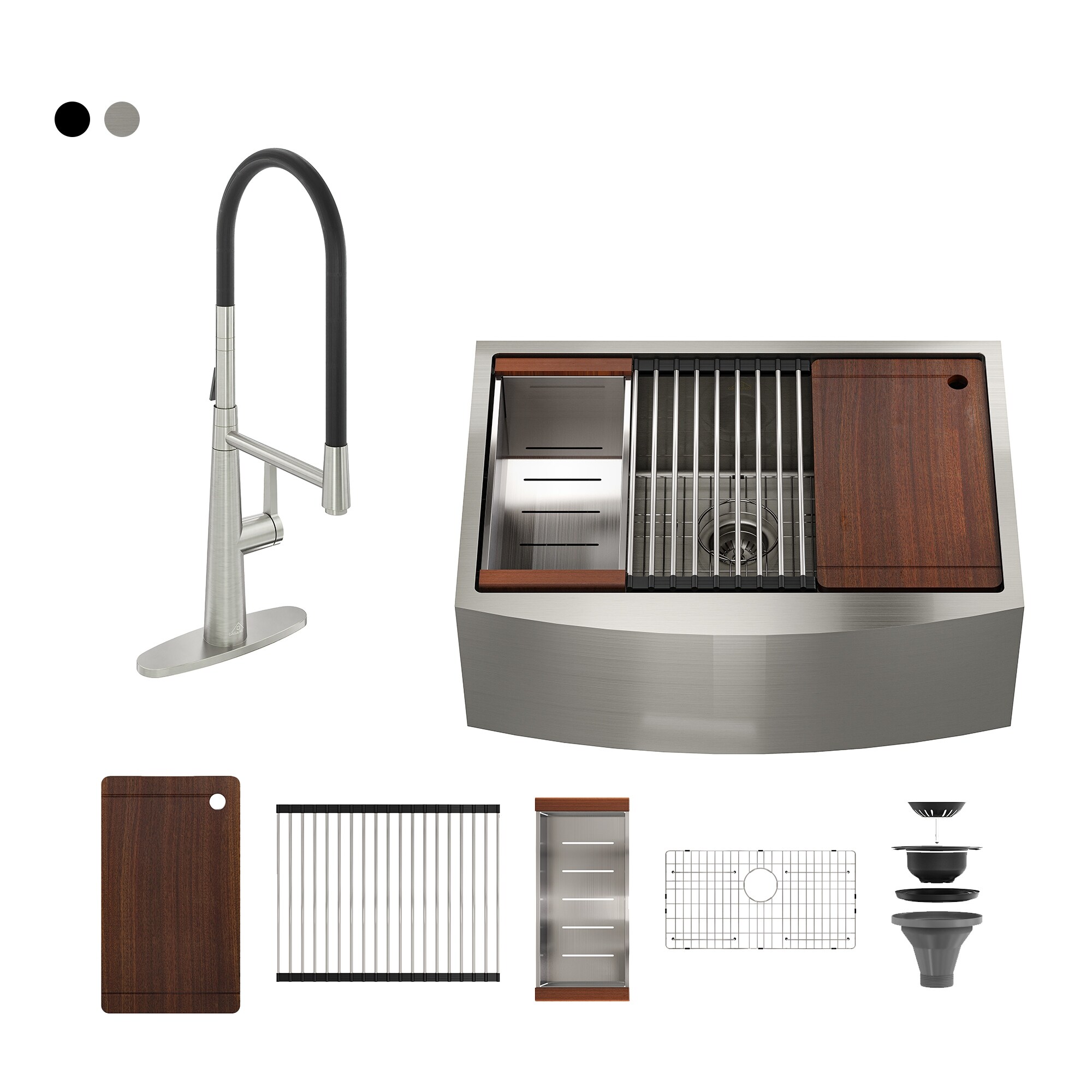 KRAUS Kore Stainless Steel Farmhouse Kitchen Sink with Accessories