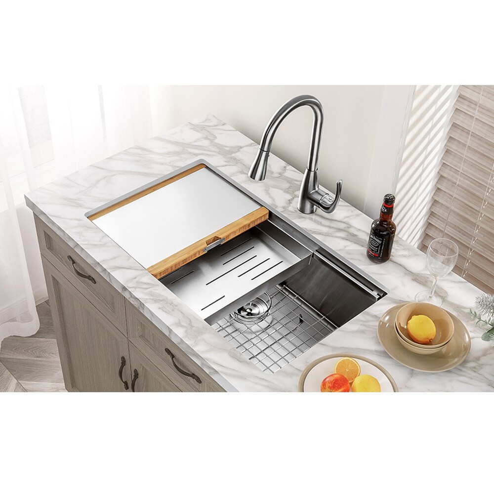 Modern 33'' Drop-in Single Bowl Stainless Steel Kitchen Sinks, Workstation Sink for Kitchen - 33