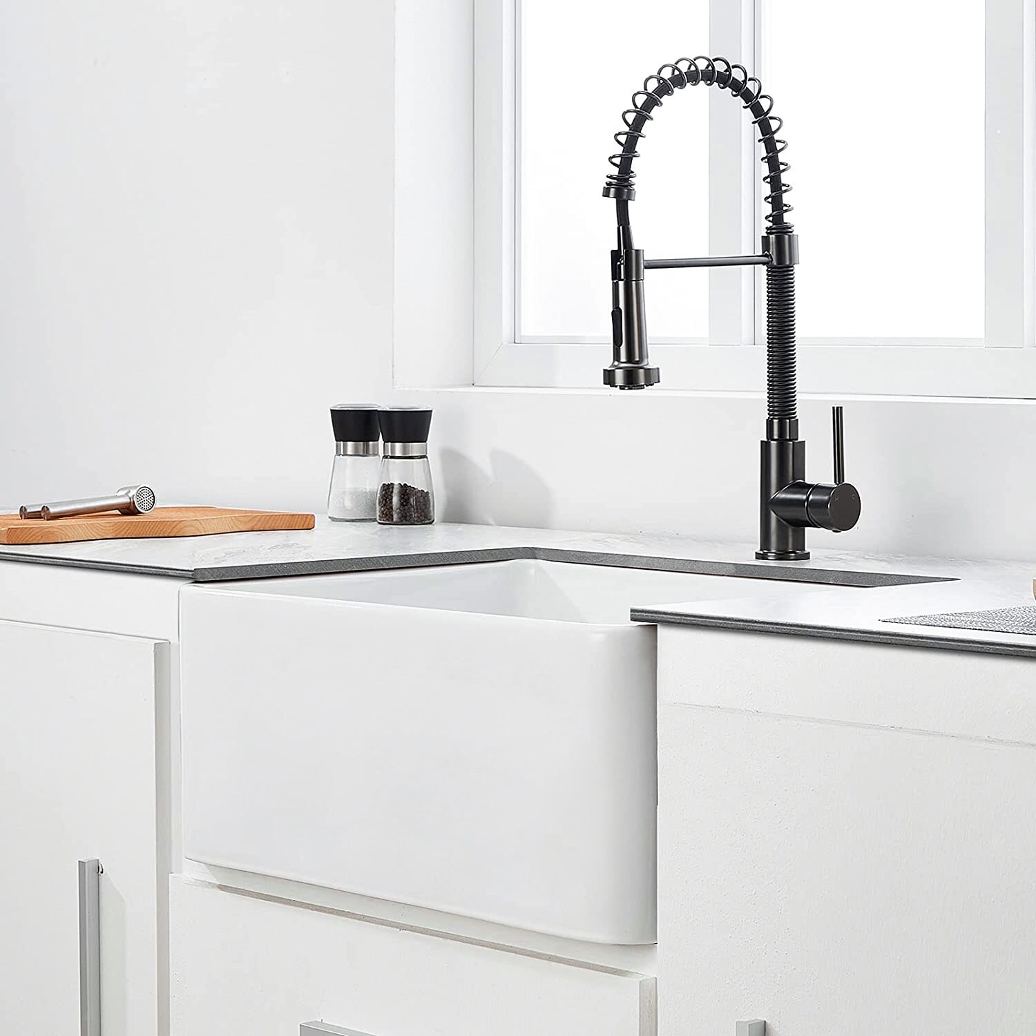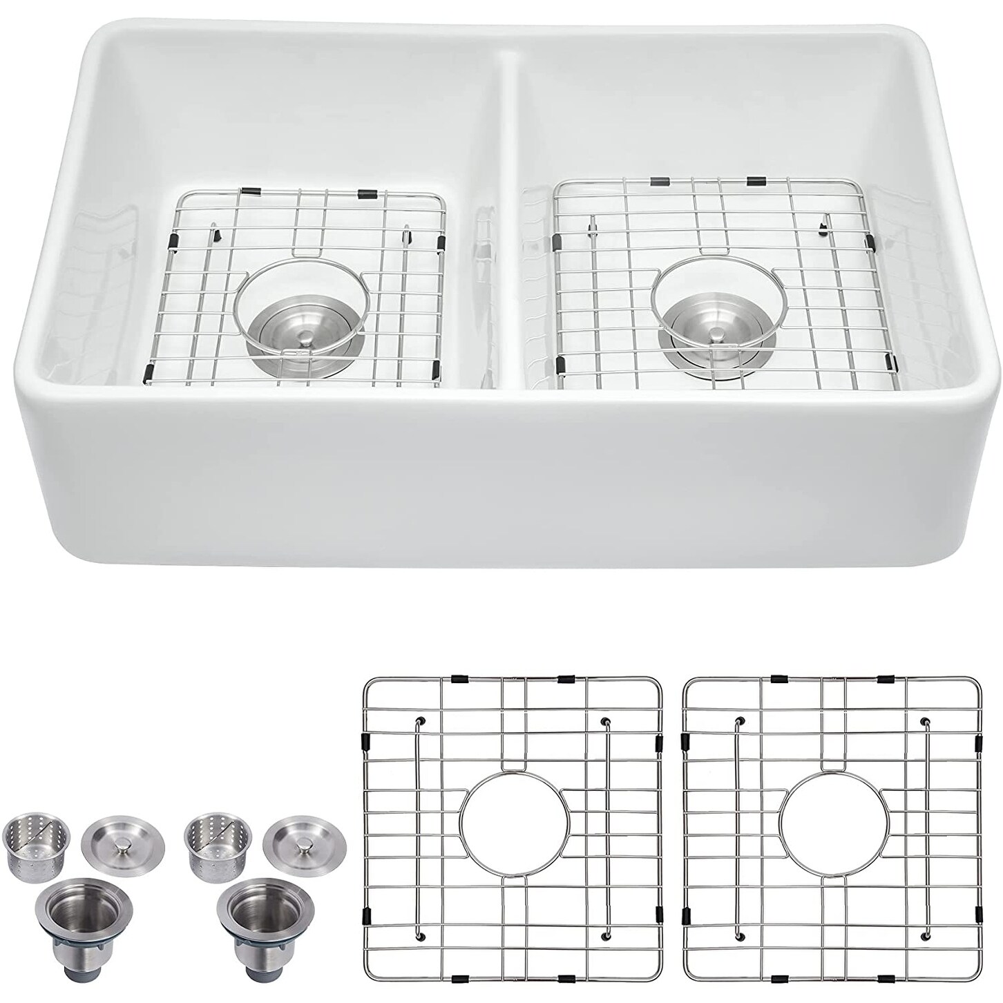 Fireclay Farmhouse Kitchen Sink with Grid and Strainer Included