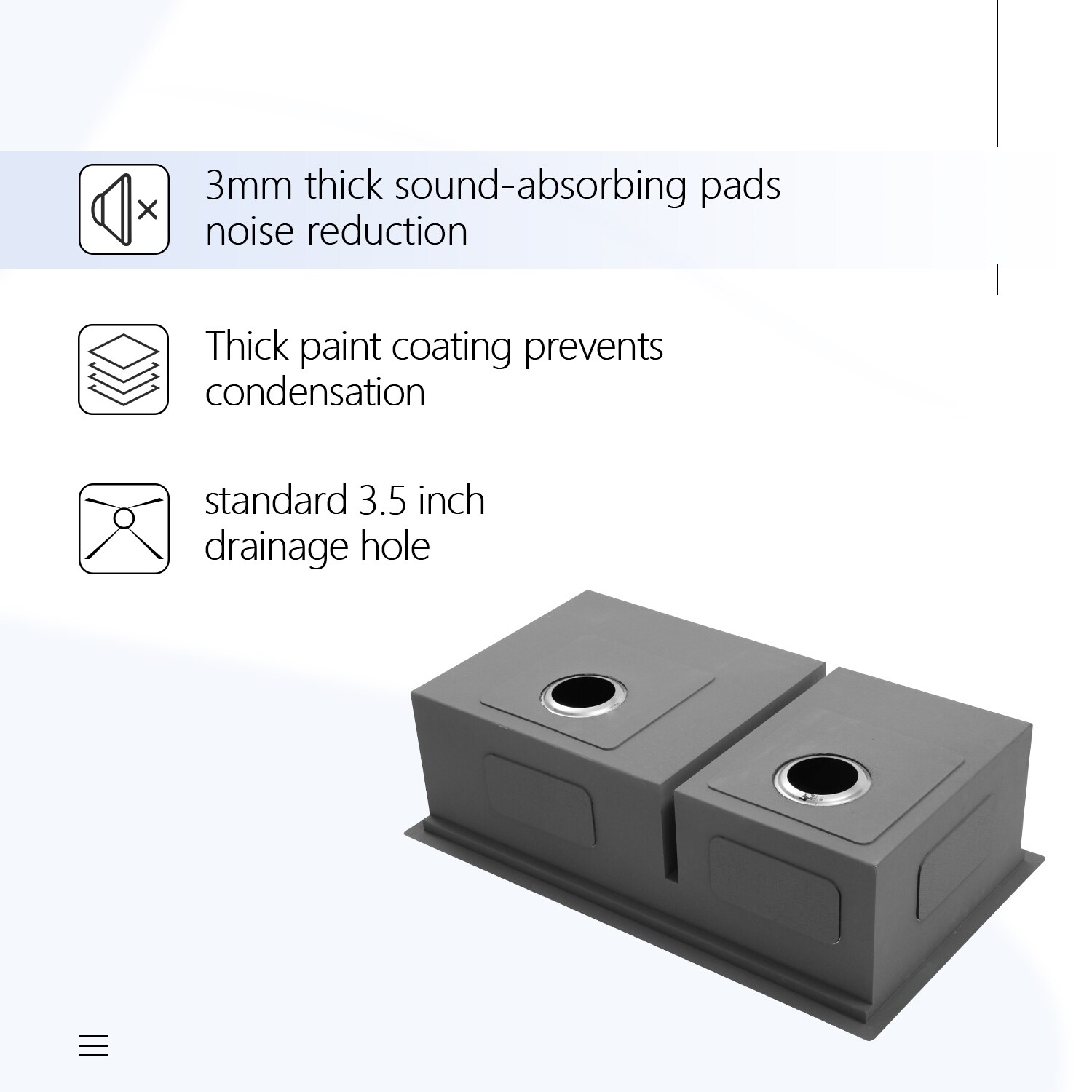 STYLISH 28 inch Double Bowl Undermount Stainless Steel Kitchen Sink - 28" x 18" x 10"