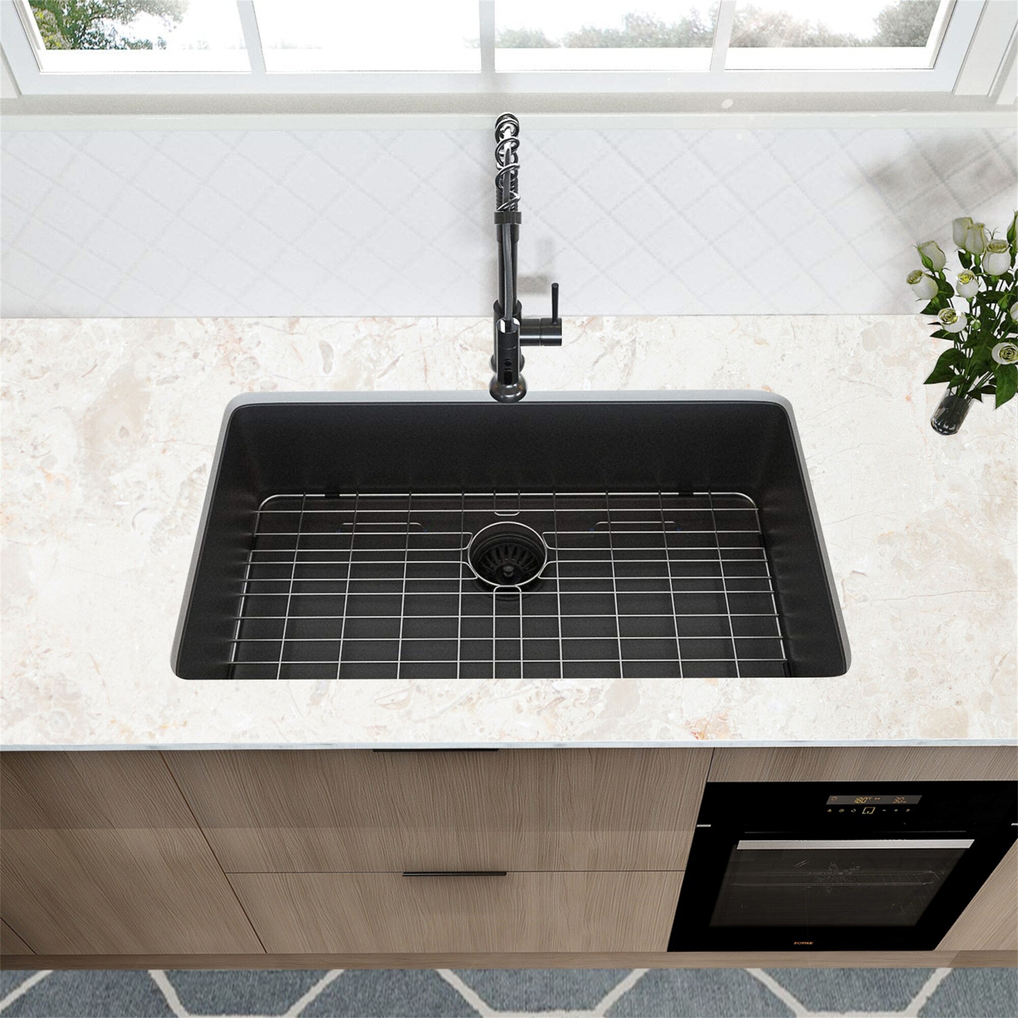 STYLISH 30 inch Graphite Black Single Bowl Undermount Stainless Steel Kitchen Sink with Grid and Basket Strainer