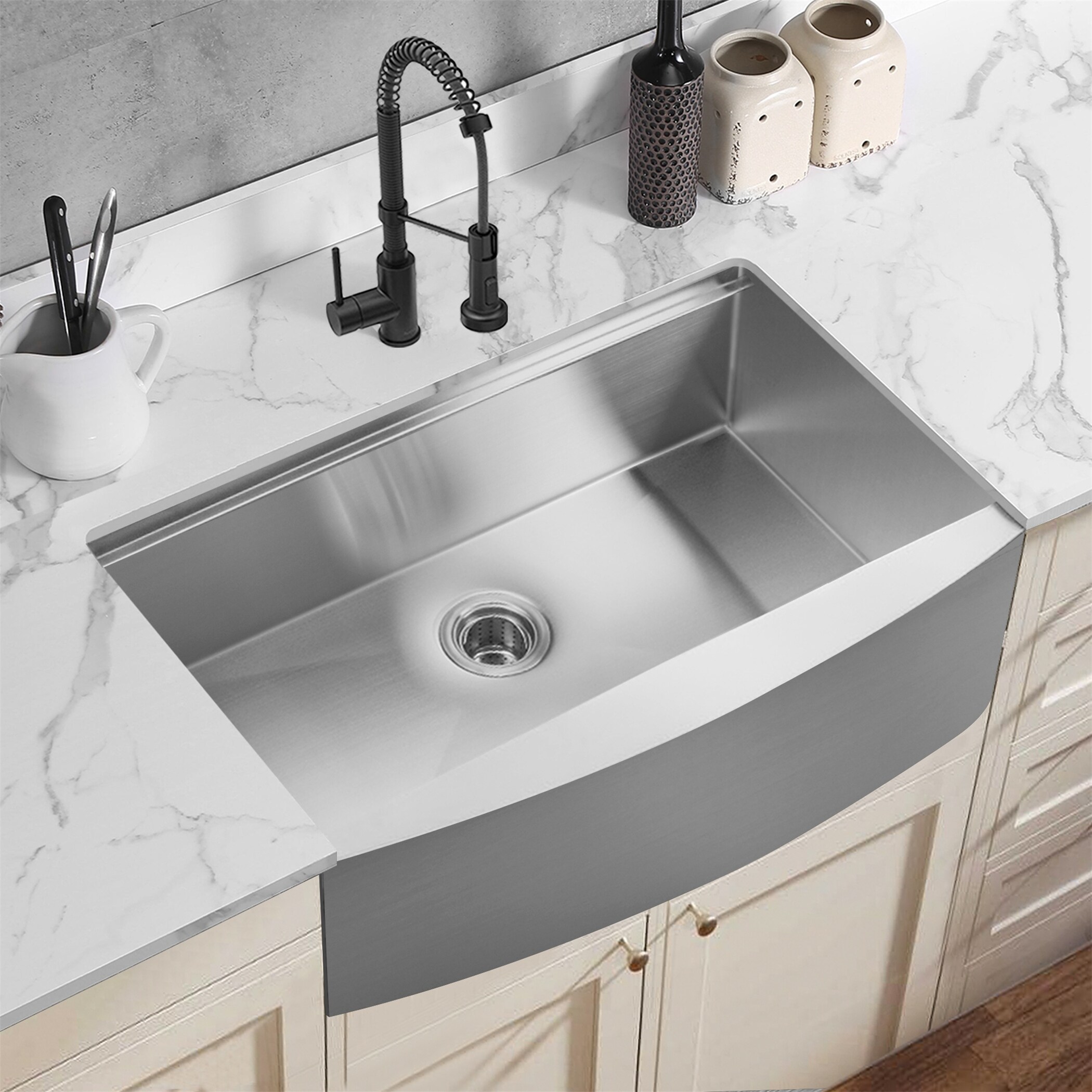 Farmhouse Stainless Steel 30-inch Single Bowl Kitchen Sink in Brushed with Kitchen Faucet