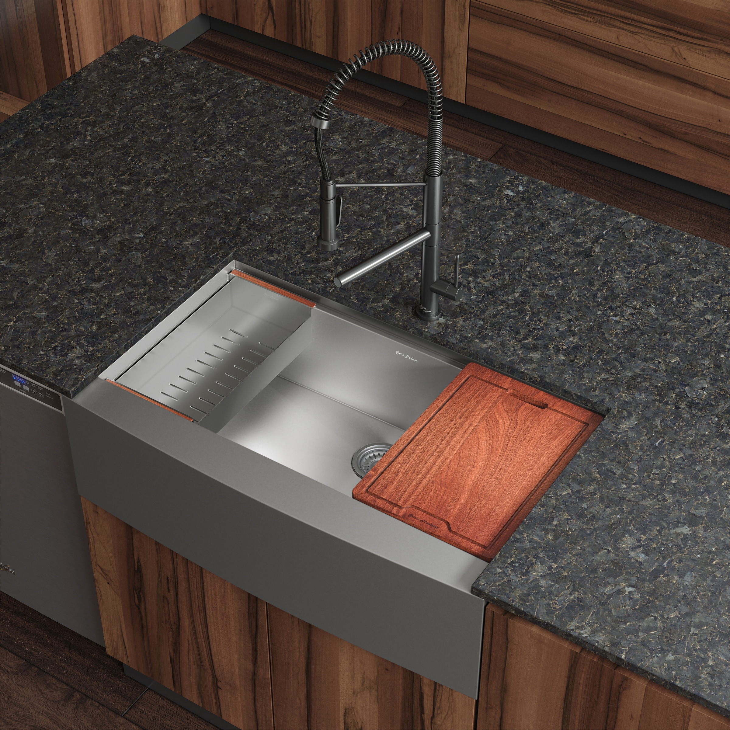 KRAUS Kore Workstation Farmhouse Apron Stainless Steel Kitchen Sink