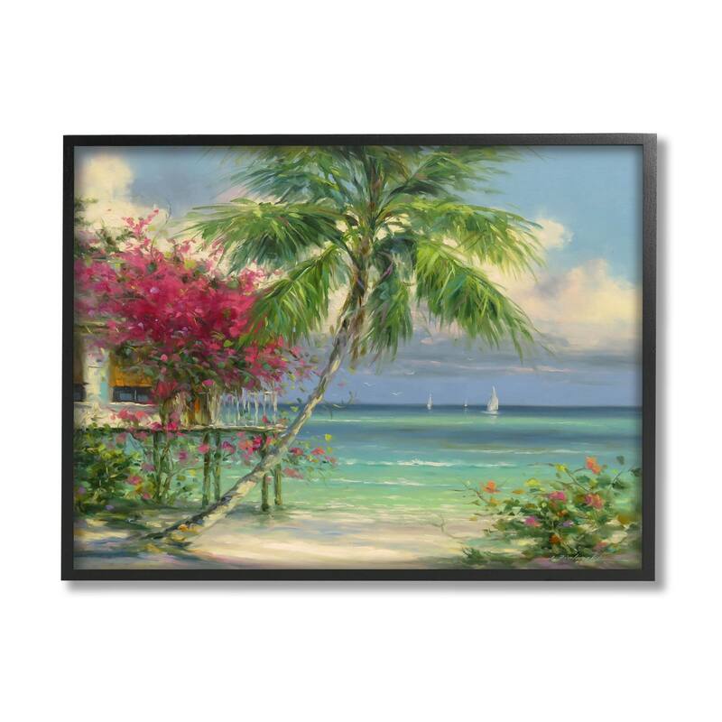 Stupell Industries Floral Tropical Summer Vacation Resort Framed Giclee Art by Martin Figlinski