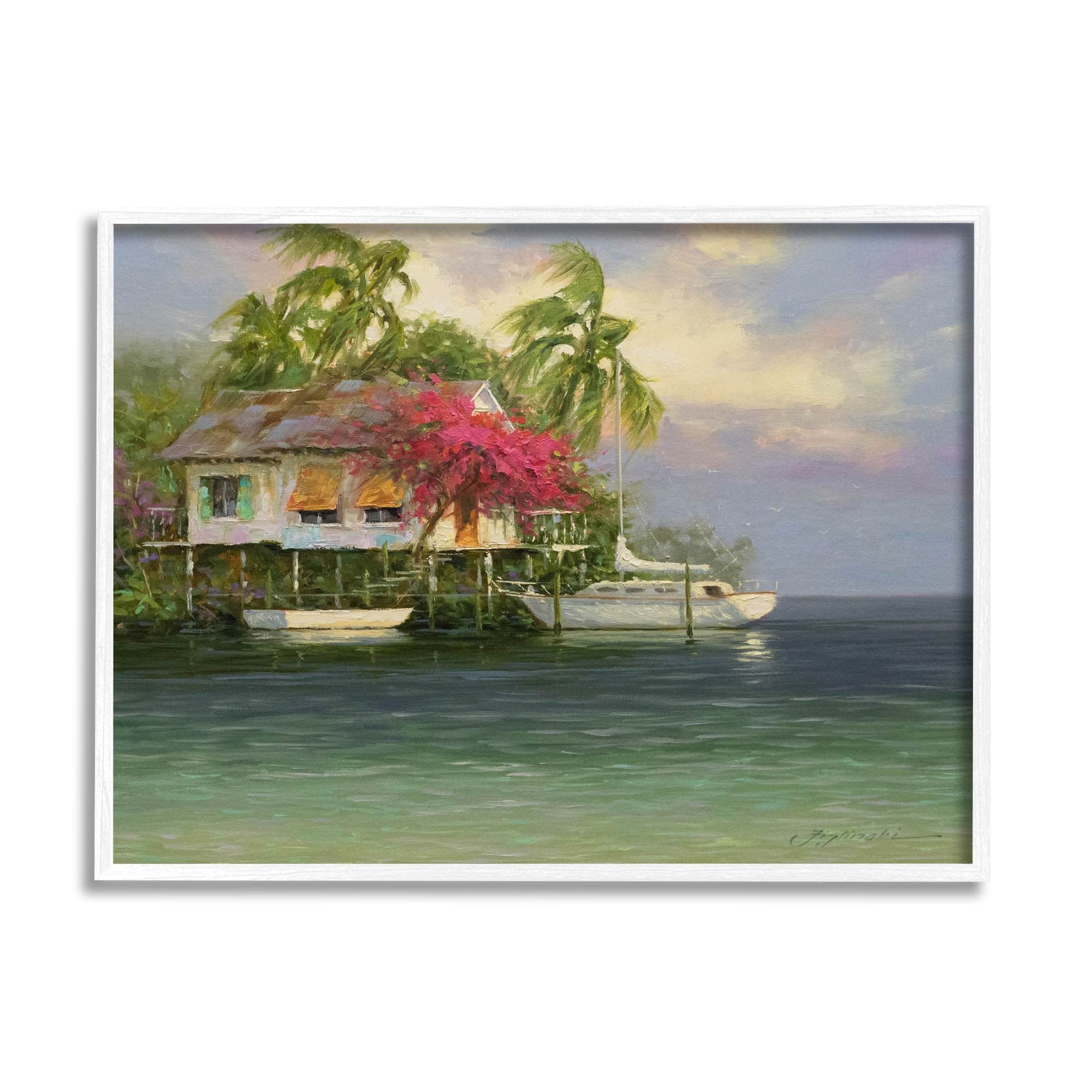 Stupell Vacation Waterfront Tropical Pier Framed Giclee Art by Martin Figlinski