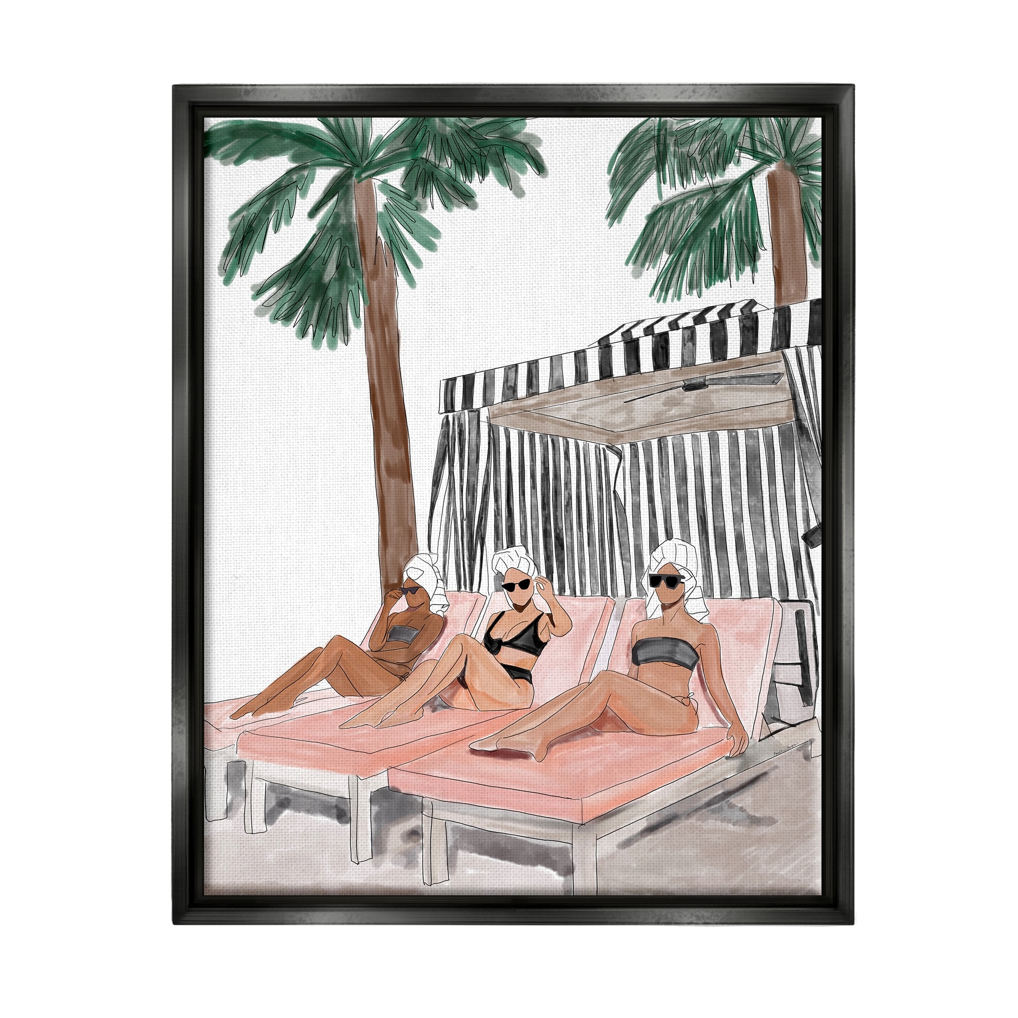 Stupell Industries Girls Lounging Tropical Vacation Framed Floater Canvas Wall Art by Amelia Noyes