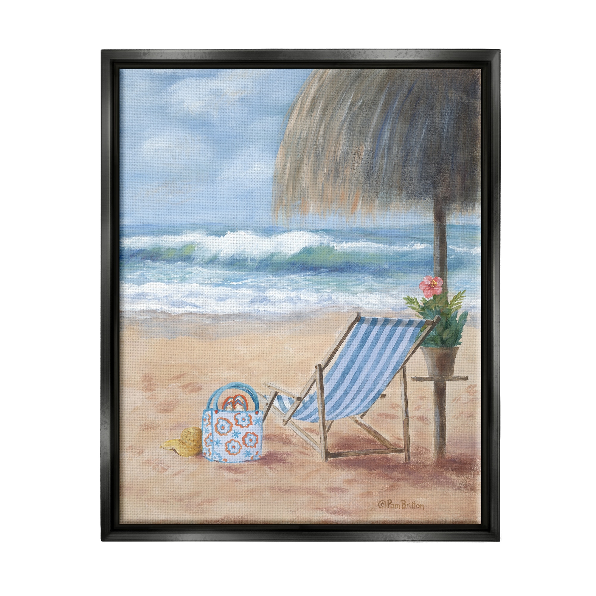 Stupell Industries Beach Chair Tropical Relaxing Vacation Framed Floater Canvas Wall Art by Pam Britton
