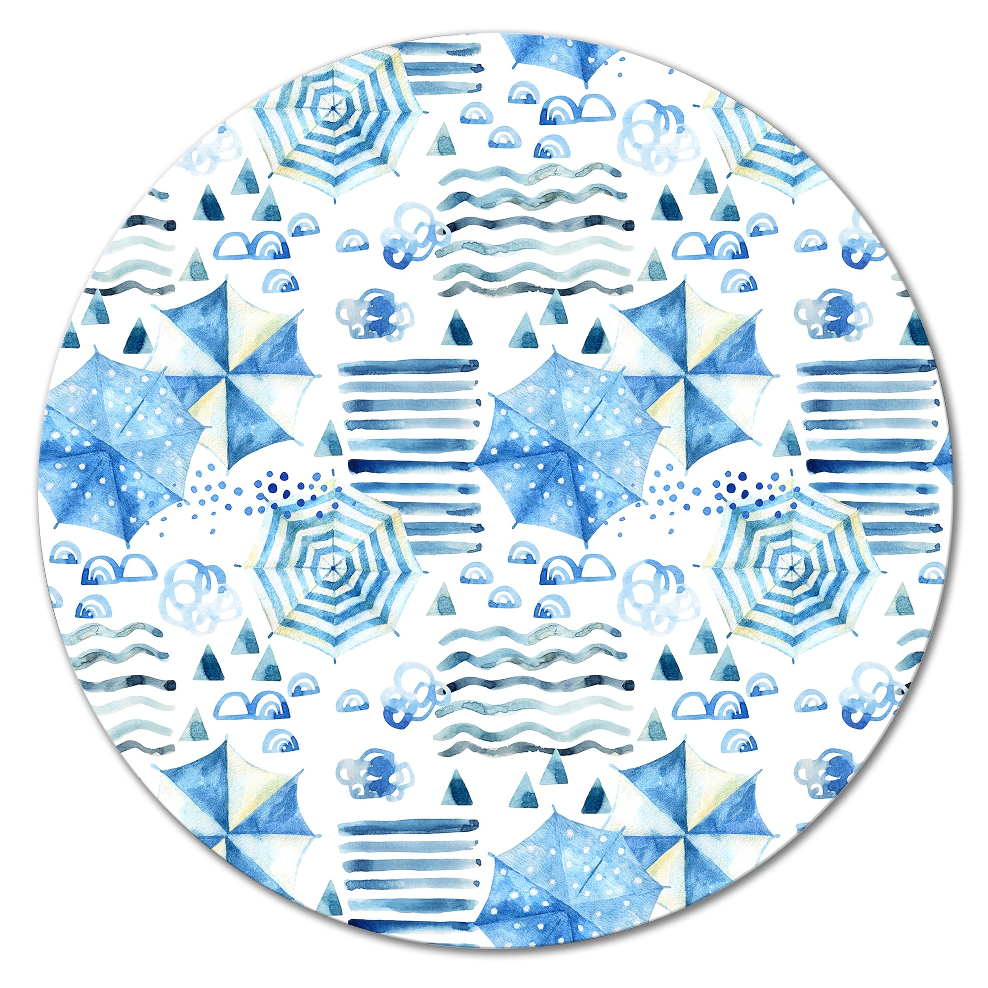 Designart 'Vacation Sun With Water Waves Sun And Umbrella IV' Patterned Metal Circle Wall Art