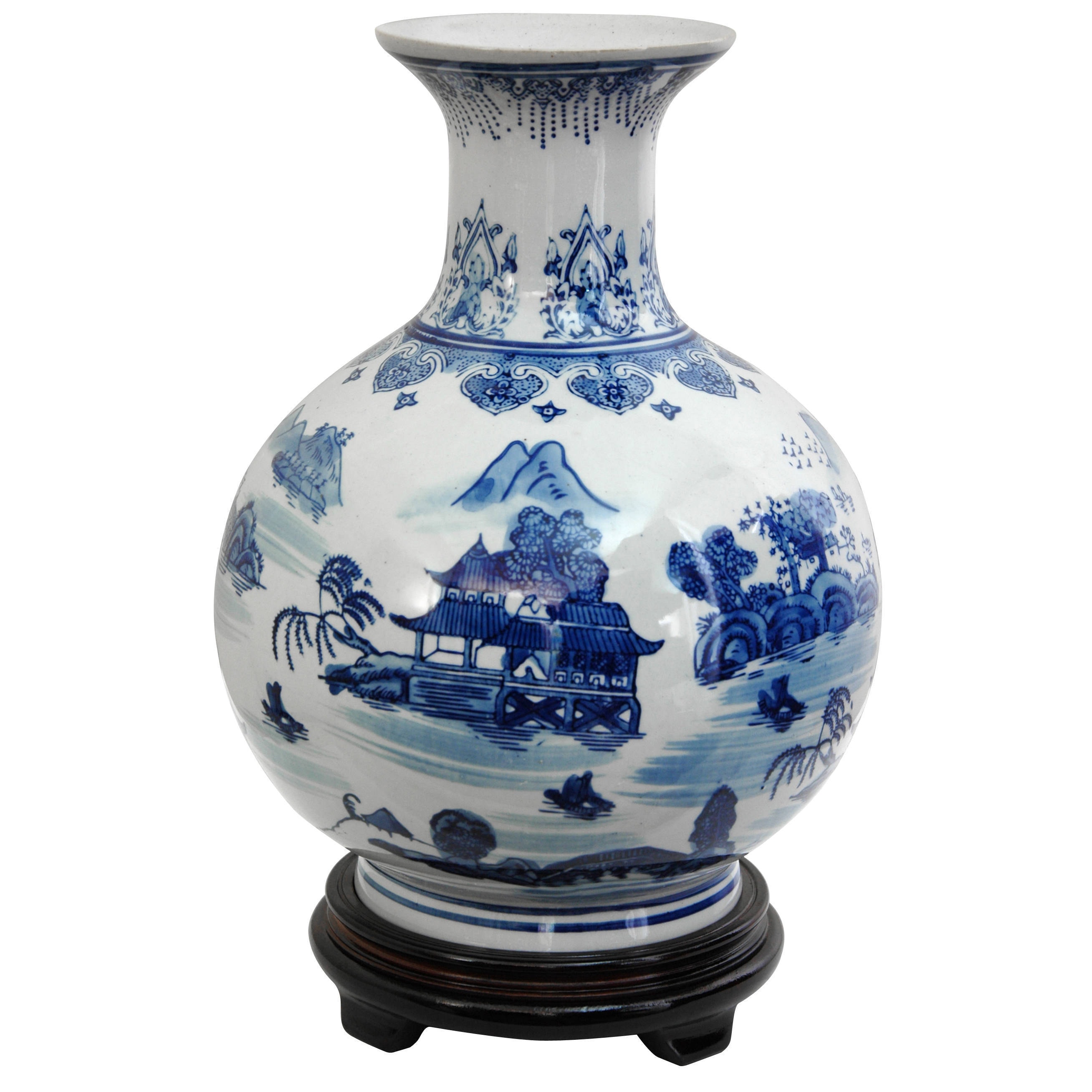 Handmade 12" Porcelain Blue and White Landscape Vase