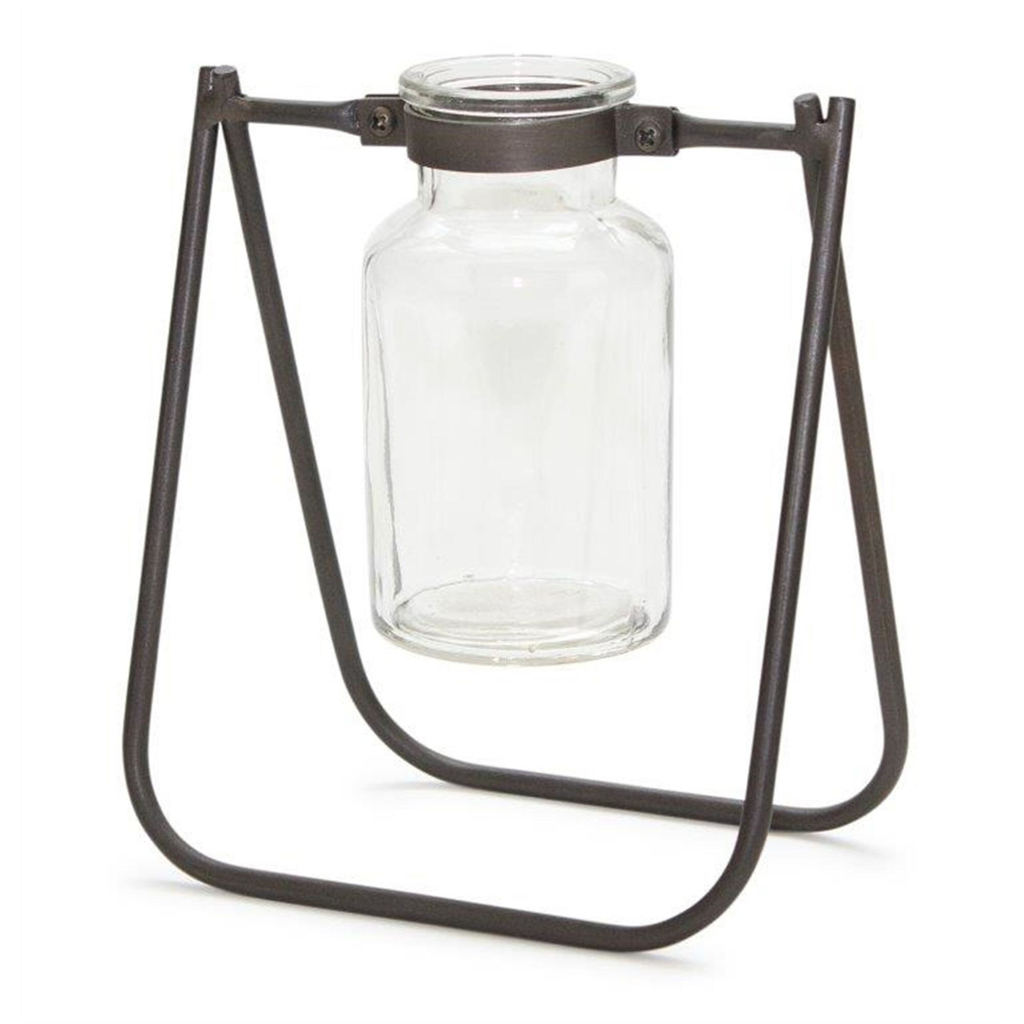 Set of 2 Brown and Clear Hanging Jar Vase in Stand 6.75"