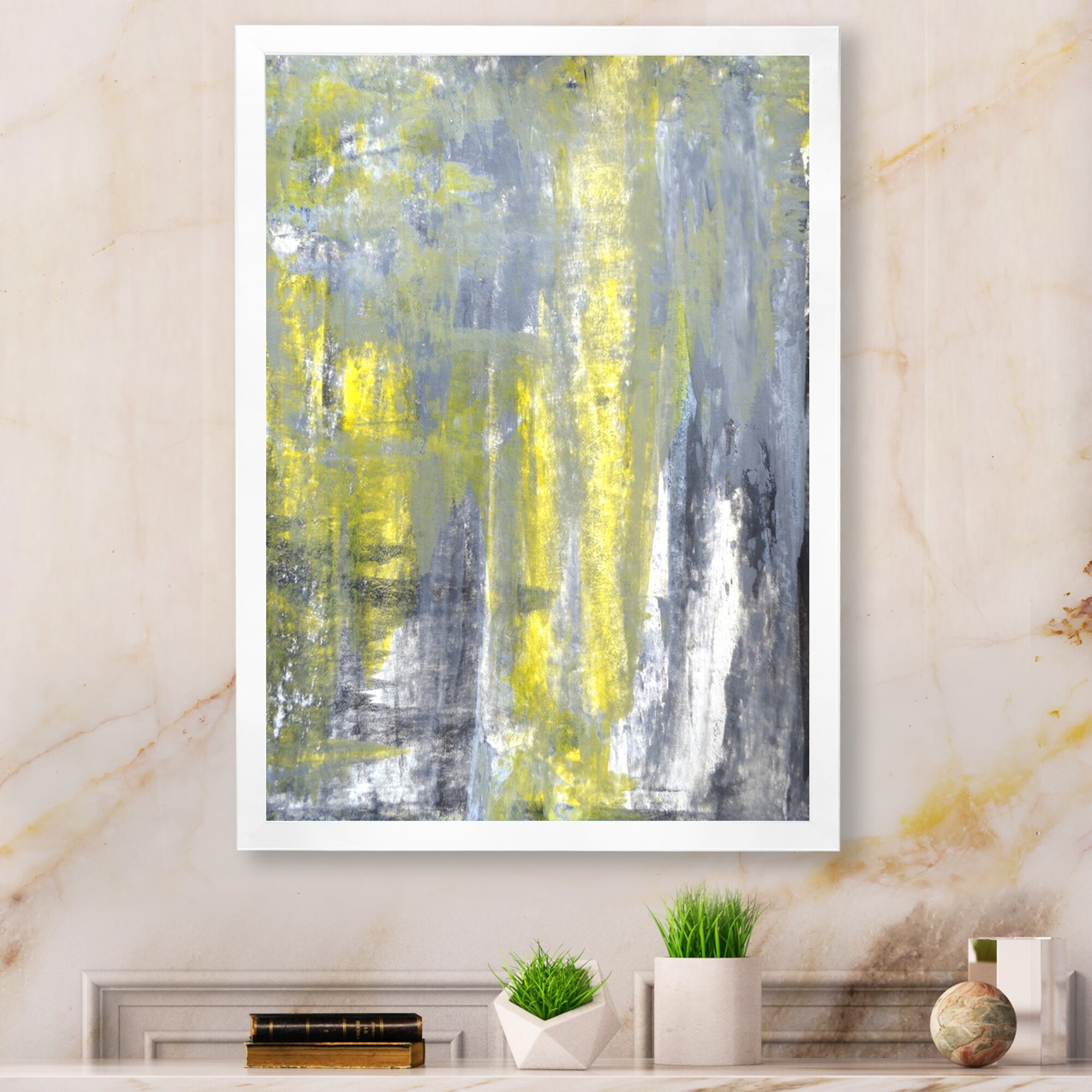 Designart "Gray And Yeollow Abstract Merging VII" Modern Framed Wall Art