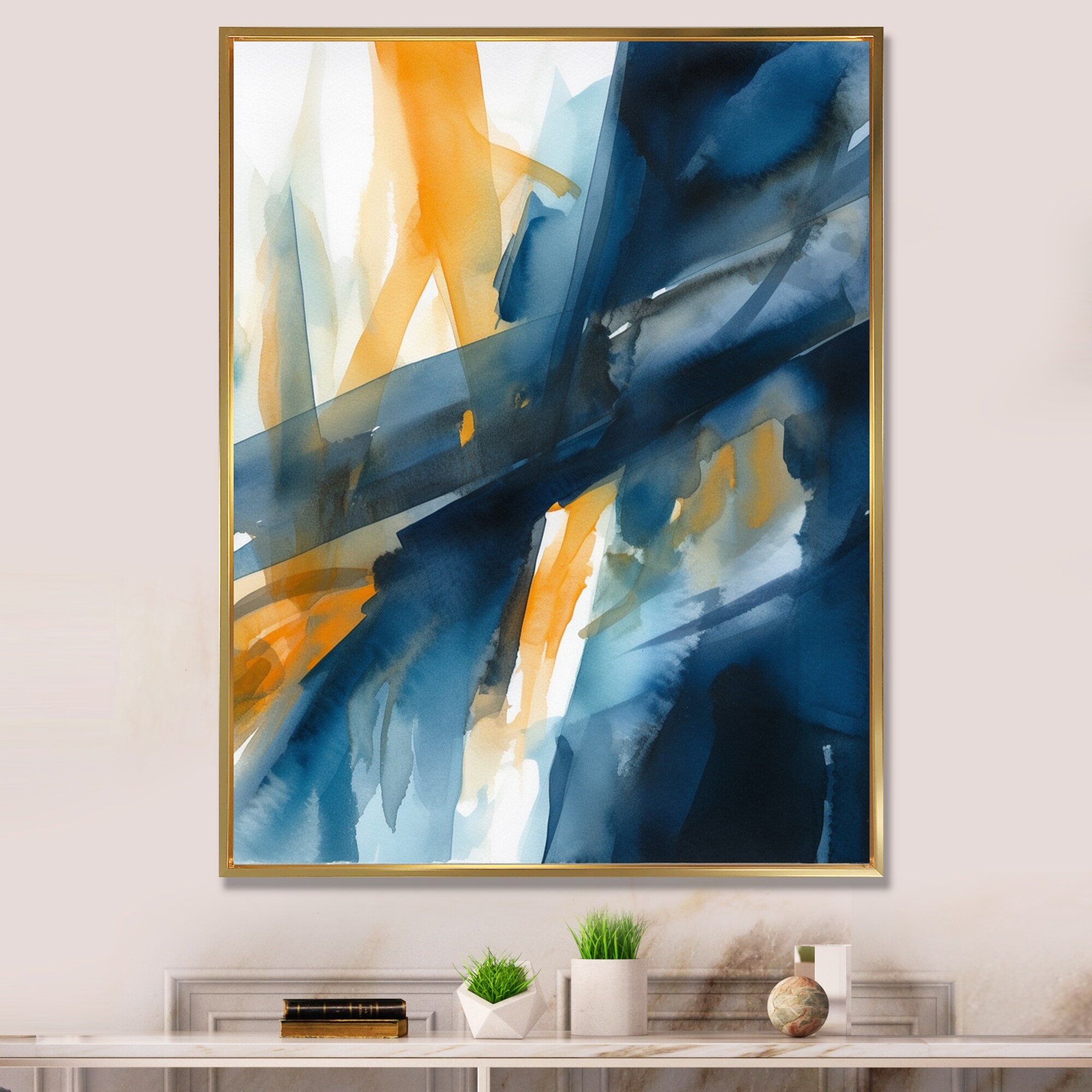 Designart "Blue And Gold Modern Art Abstract Painting VII" Modern Framed Art Print