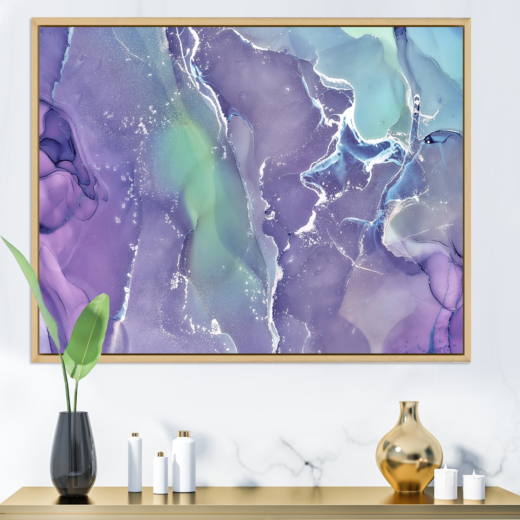 Designart "Purple And Blue Liquid Fuchia Art VII" Modern Framed Canvas Wall Art Print