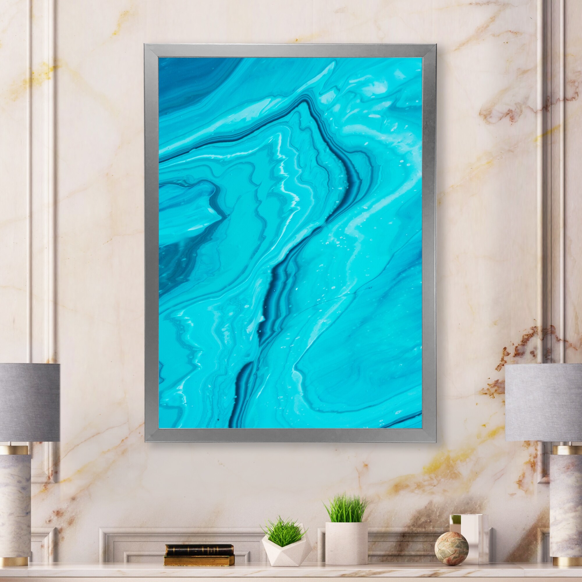 Designart "Luxury Turquoise Marble River VII" Abstract Framed Art Print