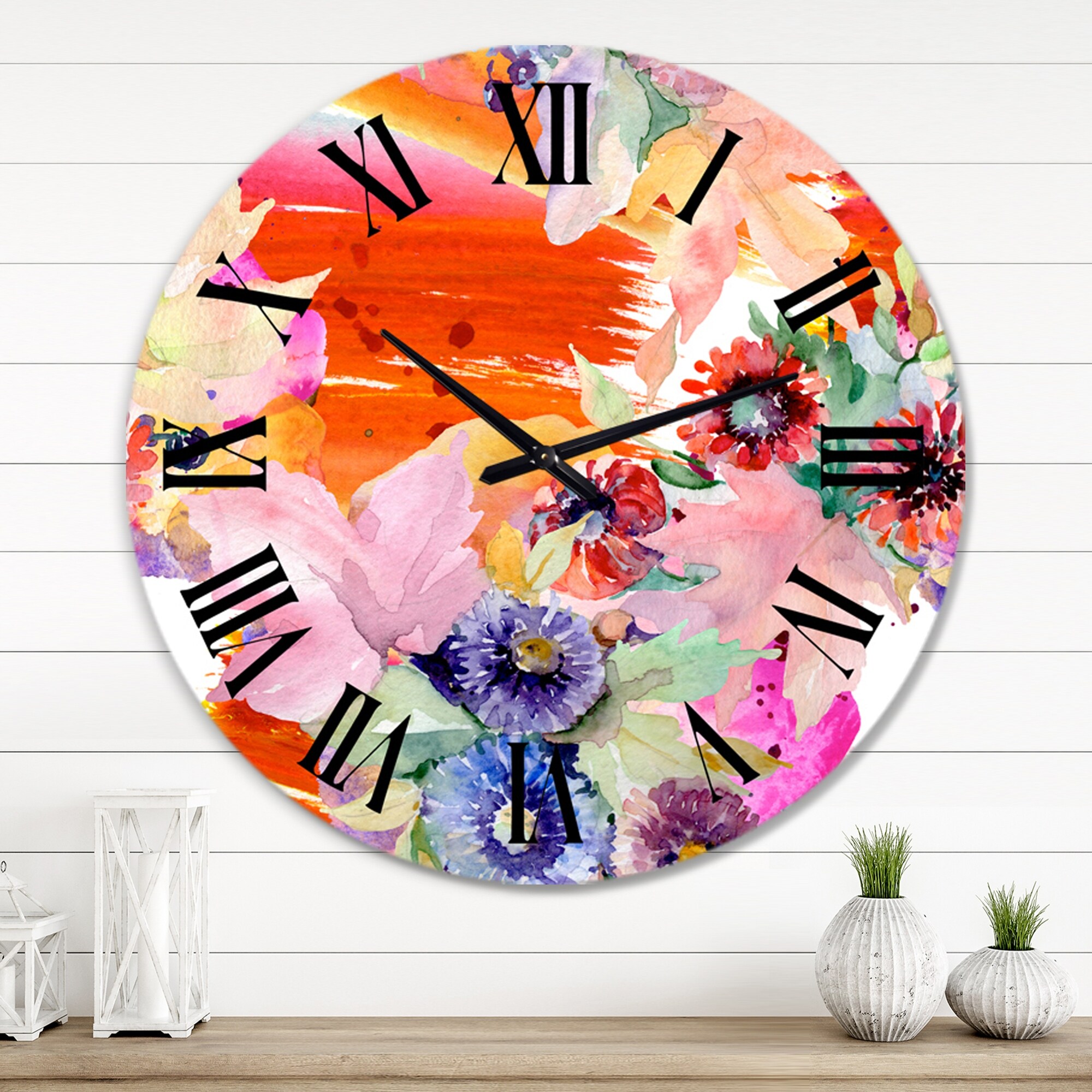 Designart 'Vibrant Wild Spring Leaves and Wildflowers VII' Modern wall clock