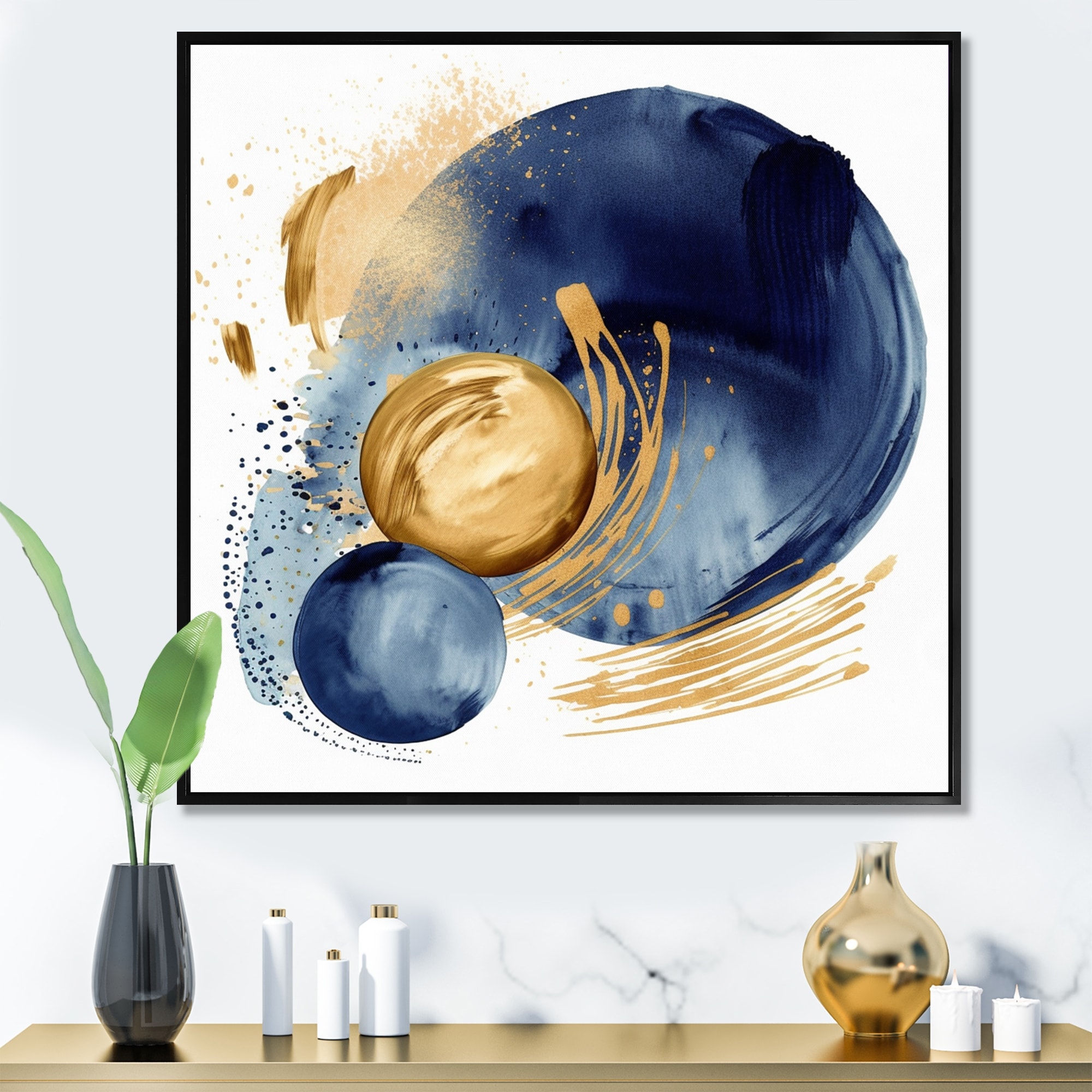 Designart "Dark Blue & Gold Abstract Circle Texture VII" Modern Geometric Framed Canvas Wall Art