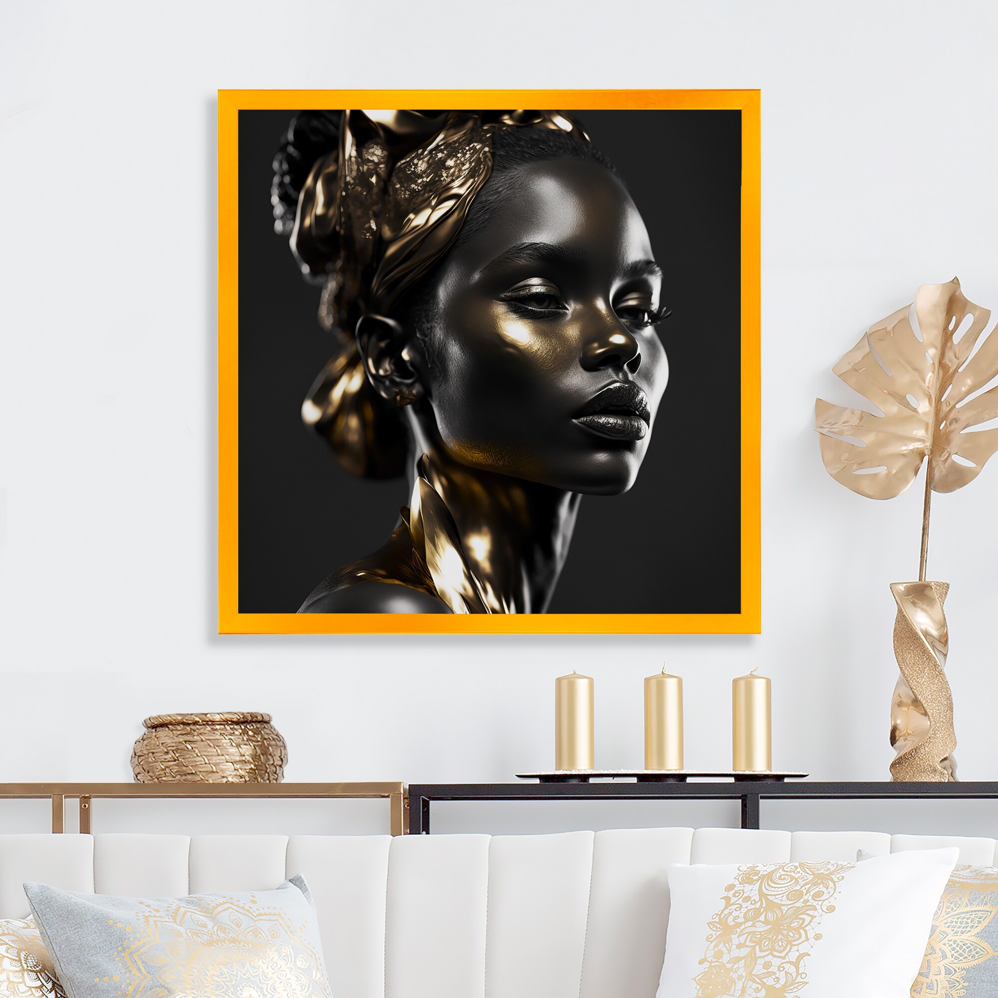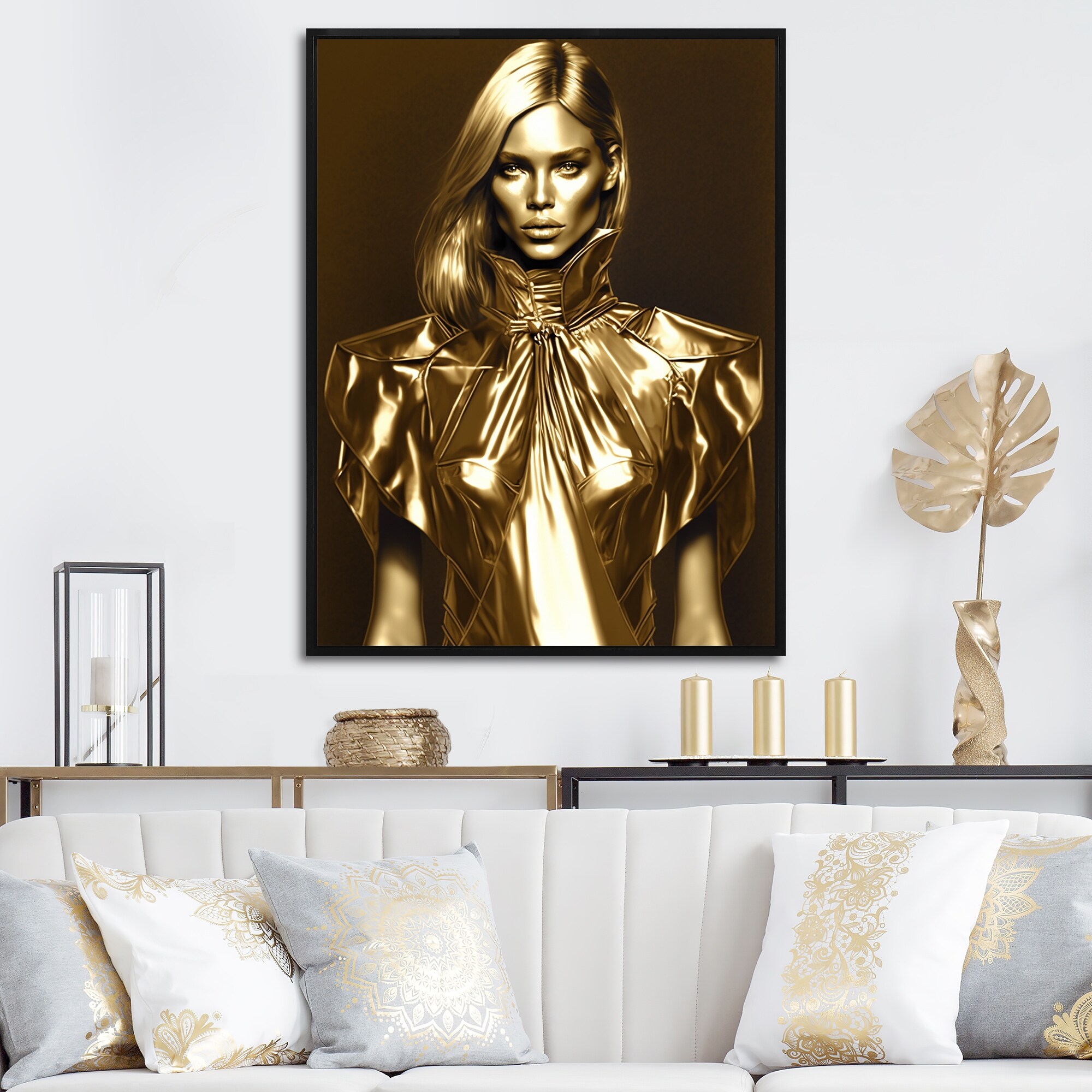 Designart "Black And Gold Elegance VII" Fashion Woman Framed Art Print