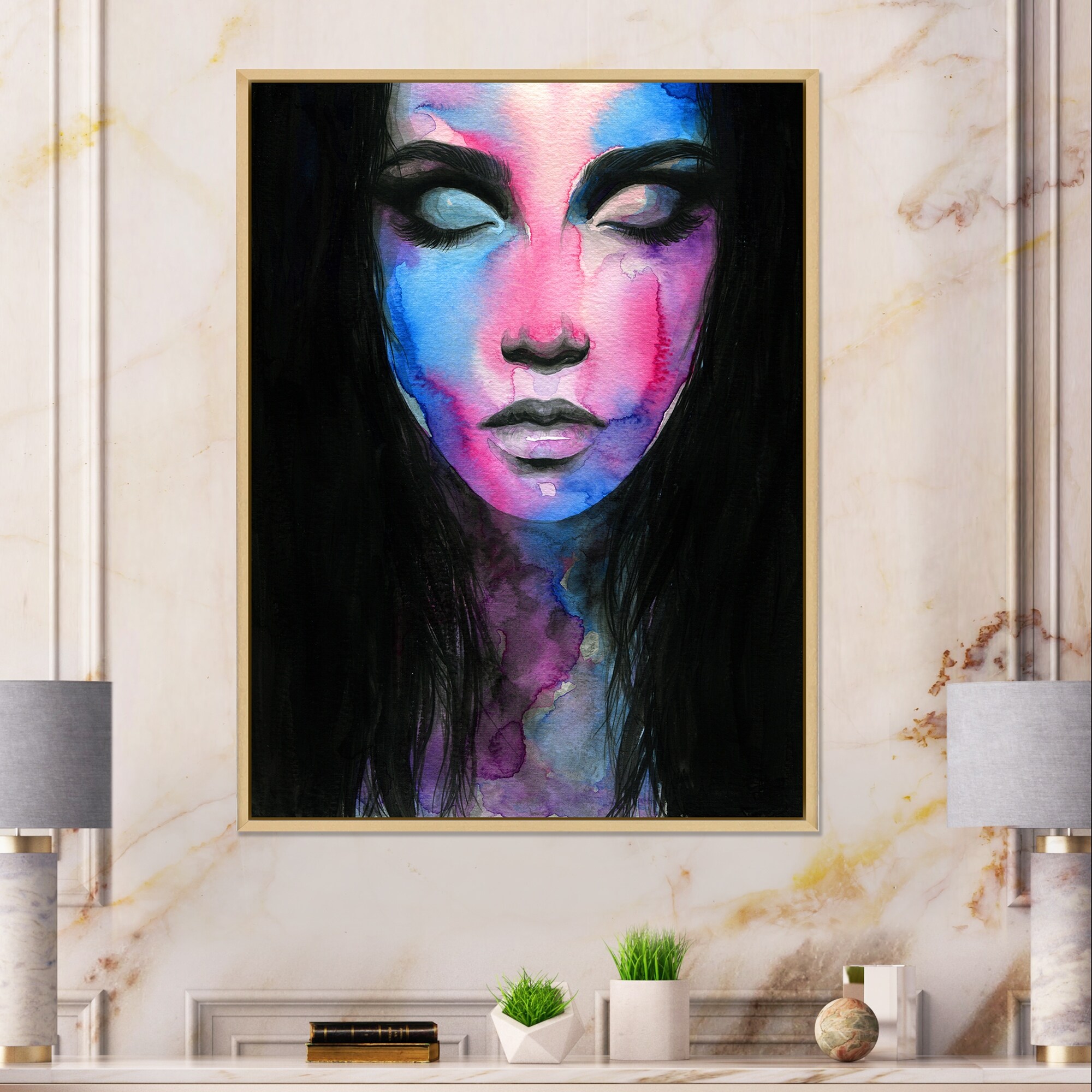 Designart "Fashion Model With Vivid Make Up VII" Glam Framed Canvas Wall Decor
