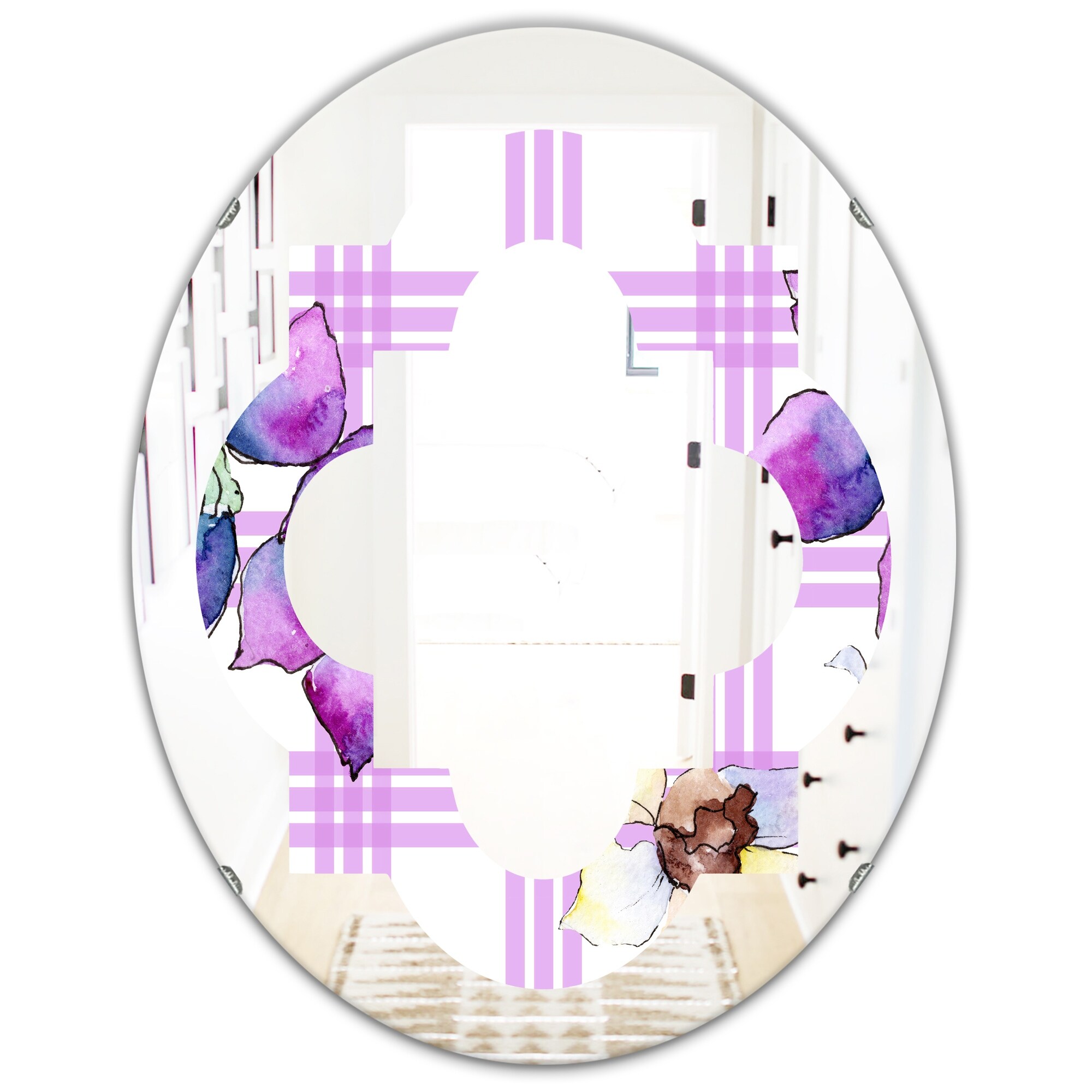 Designart 'Floral Botanical Retro VII' Printed Modern Round or Oval Wall Mirror - Quatrefoil