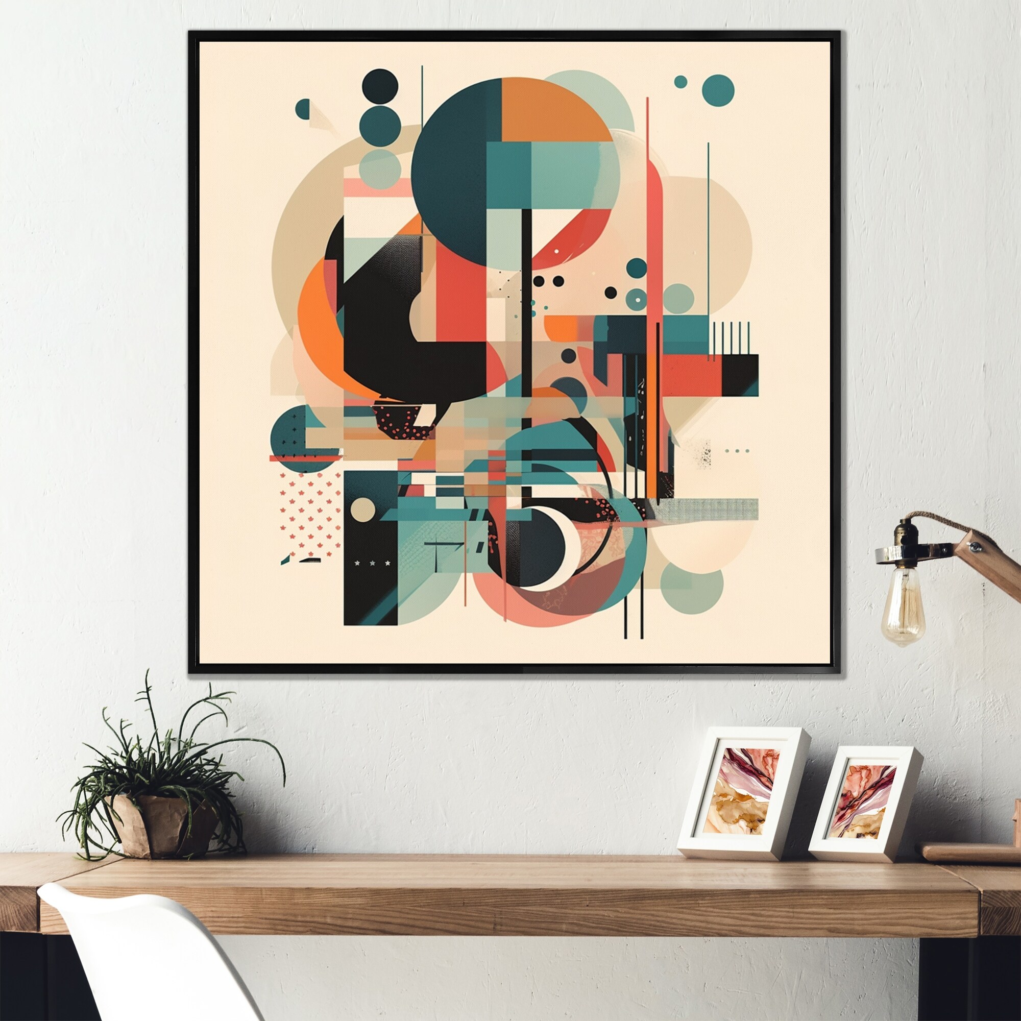 Designart "Retro Square Design VII" Mid-Century Modern Framed Canvas Wall Art Set of 3 - 4 Colors of Frames