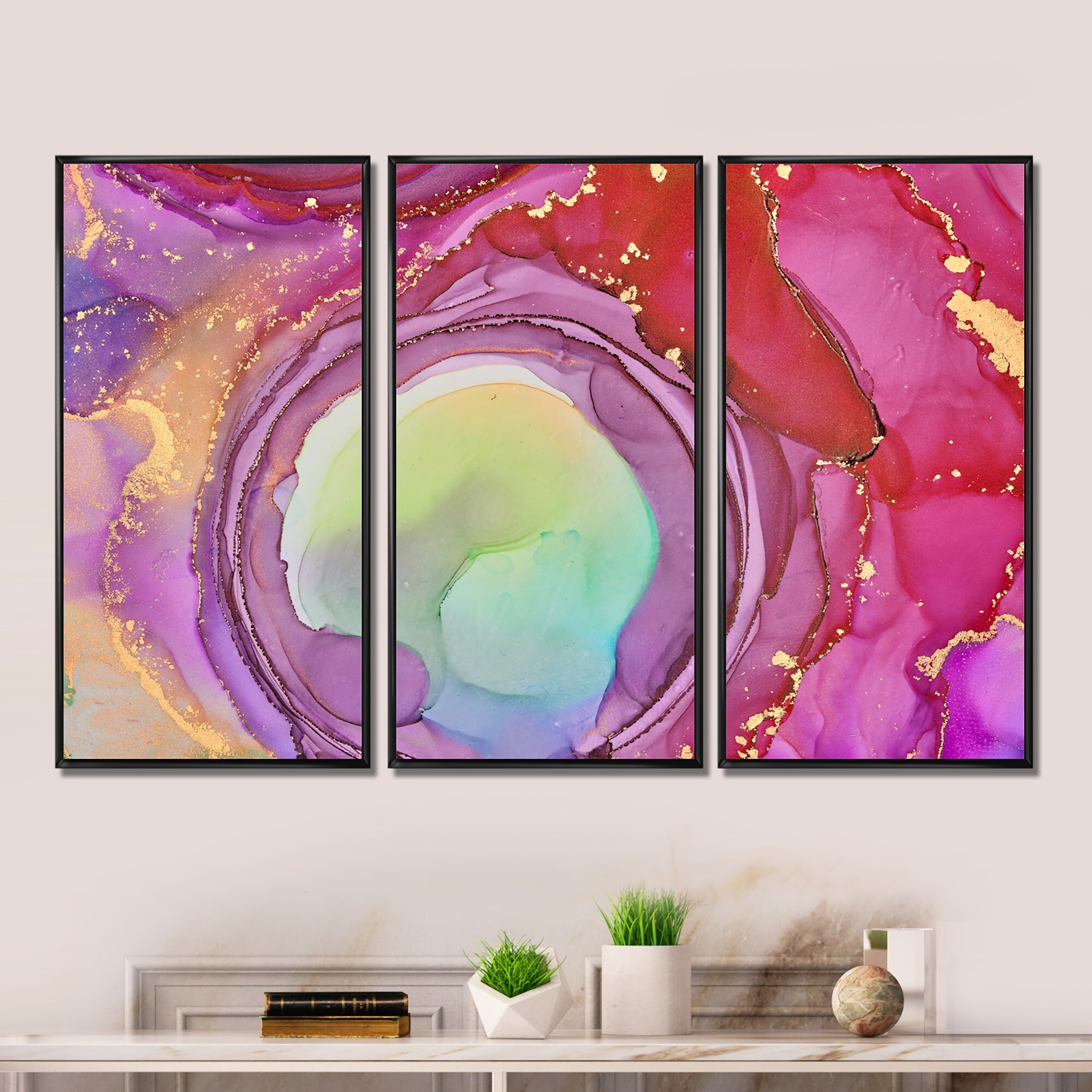 Designart "Purple And Blue Liquid Fuchia Art VII" Modern Framed Art Set of 3 - 4 Colors of Frames