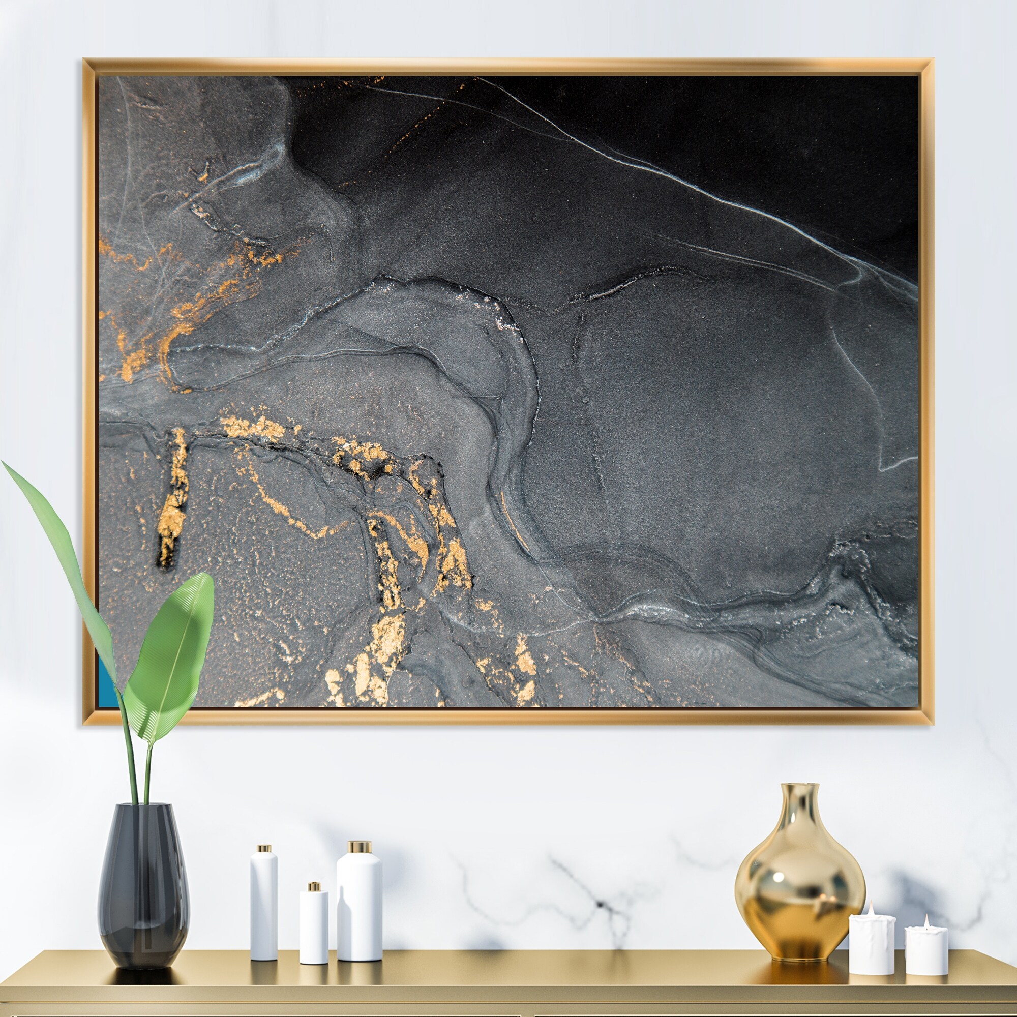 Designart "Gloden Black And Grey Marble Art Ripples VII" Abstract Framed Canvas Wall Art