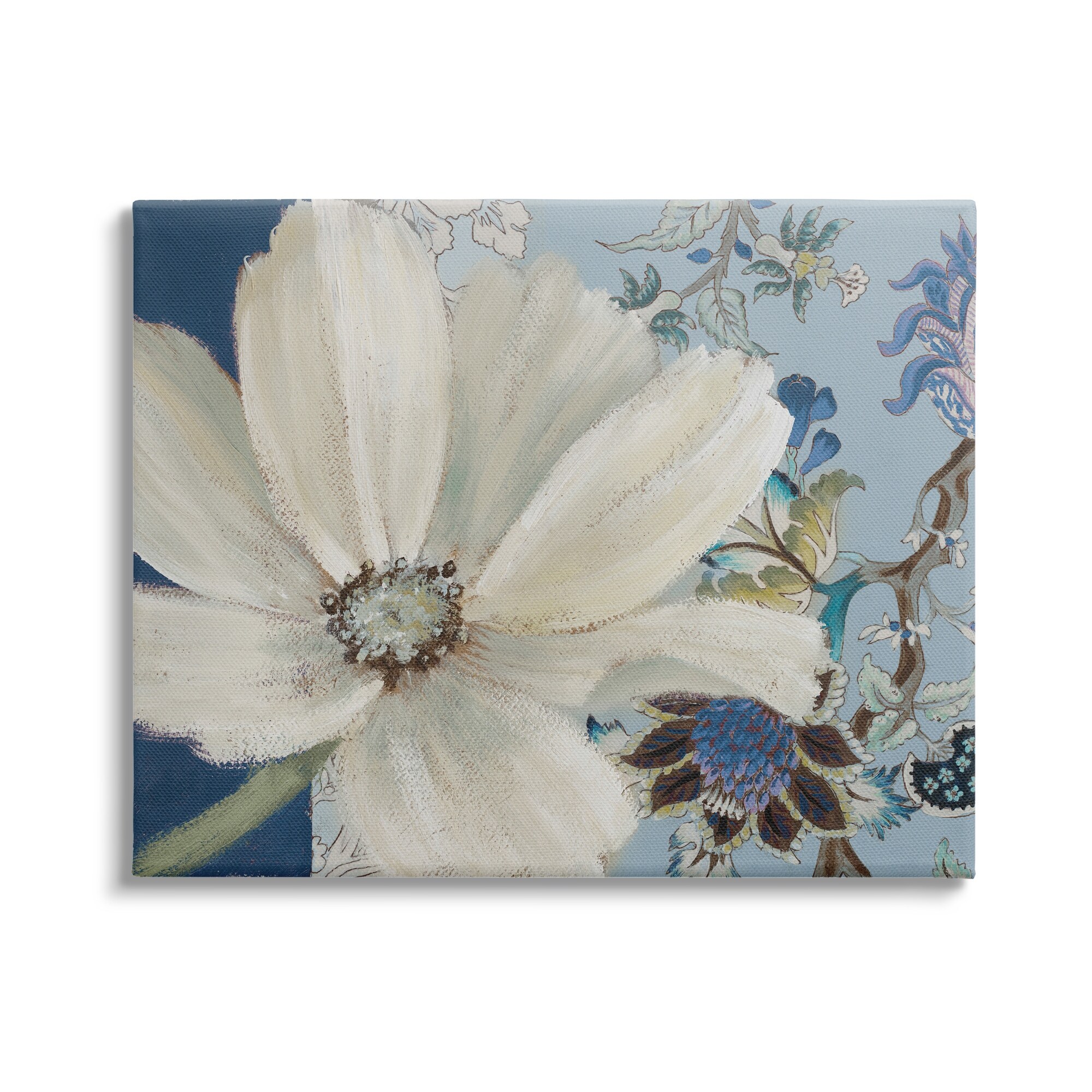 Stupell Industries Looming Cosmo Flower Vivid Floral Paisley Vine Pattern Canvas Wall Art - Blue