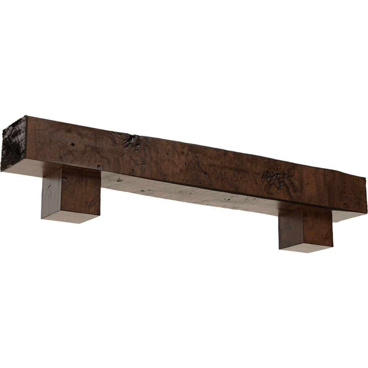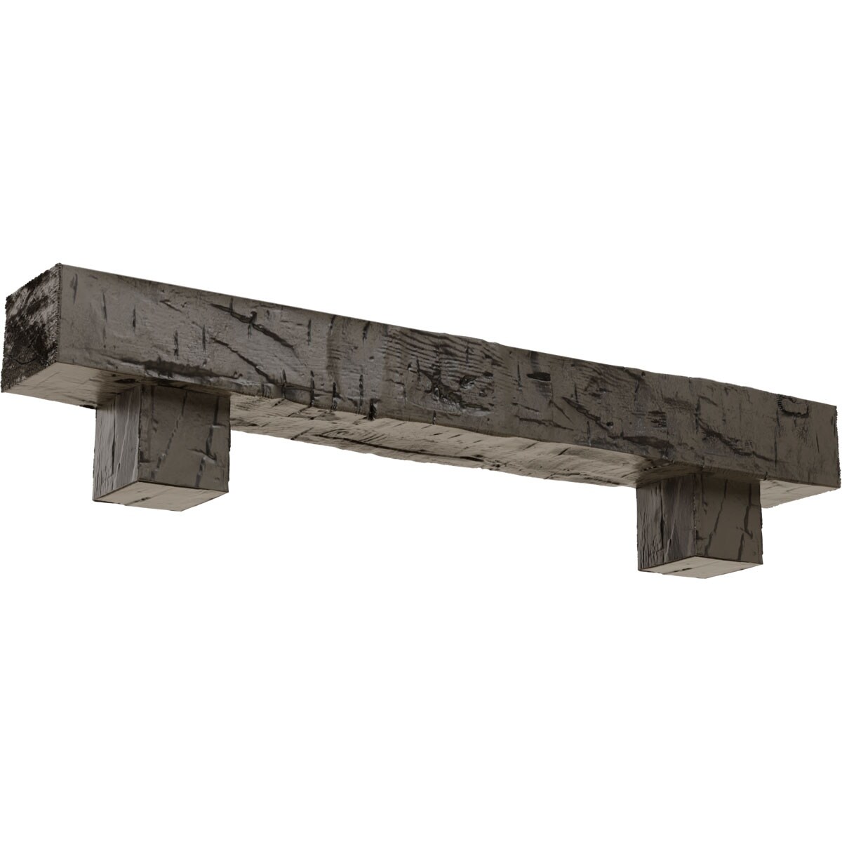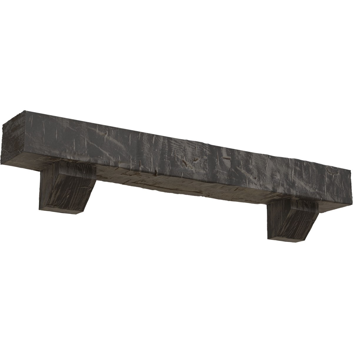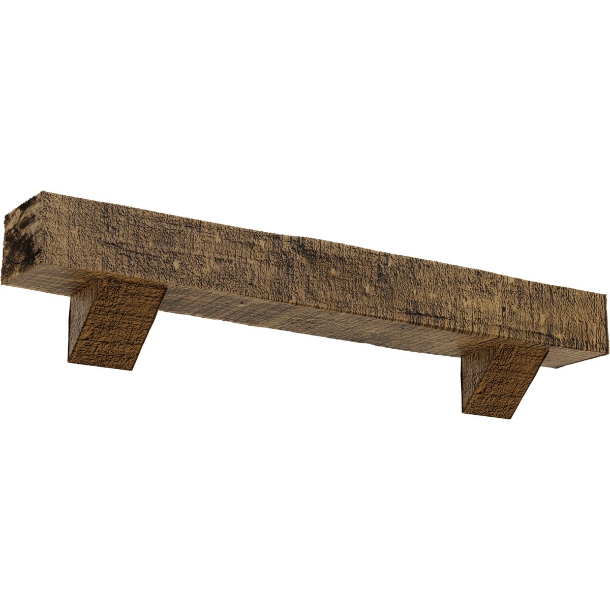 60"W Hand Hewn Faux Wood Fireplace Mantel Kit w/ Alamo Corbels