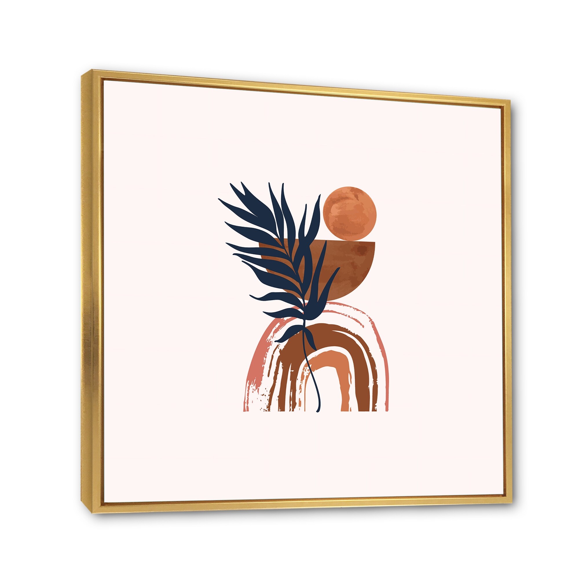 Designart "Abstract Rainbow With Tropical Leaf, Full Moon II" Tropical Framed Canvas Wall Art Print