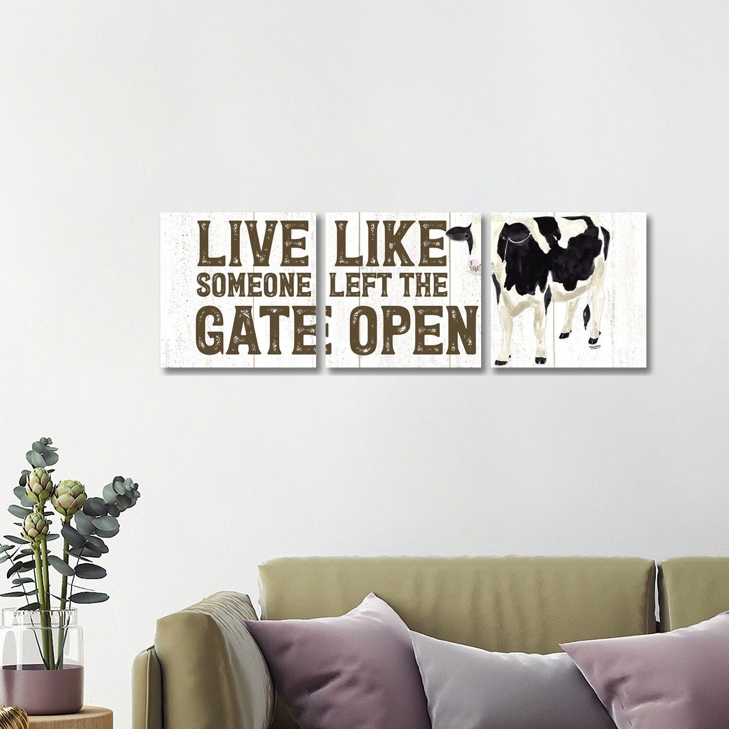 iCanvas "Farm Life Panel Live Like Gate" by Tara Reed 3-Piece Canvas Wall Art Set