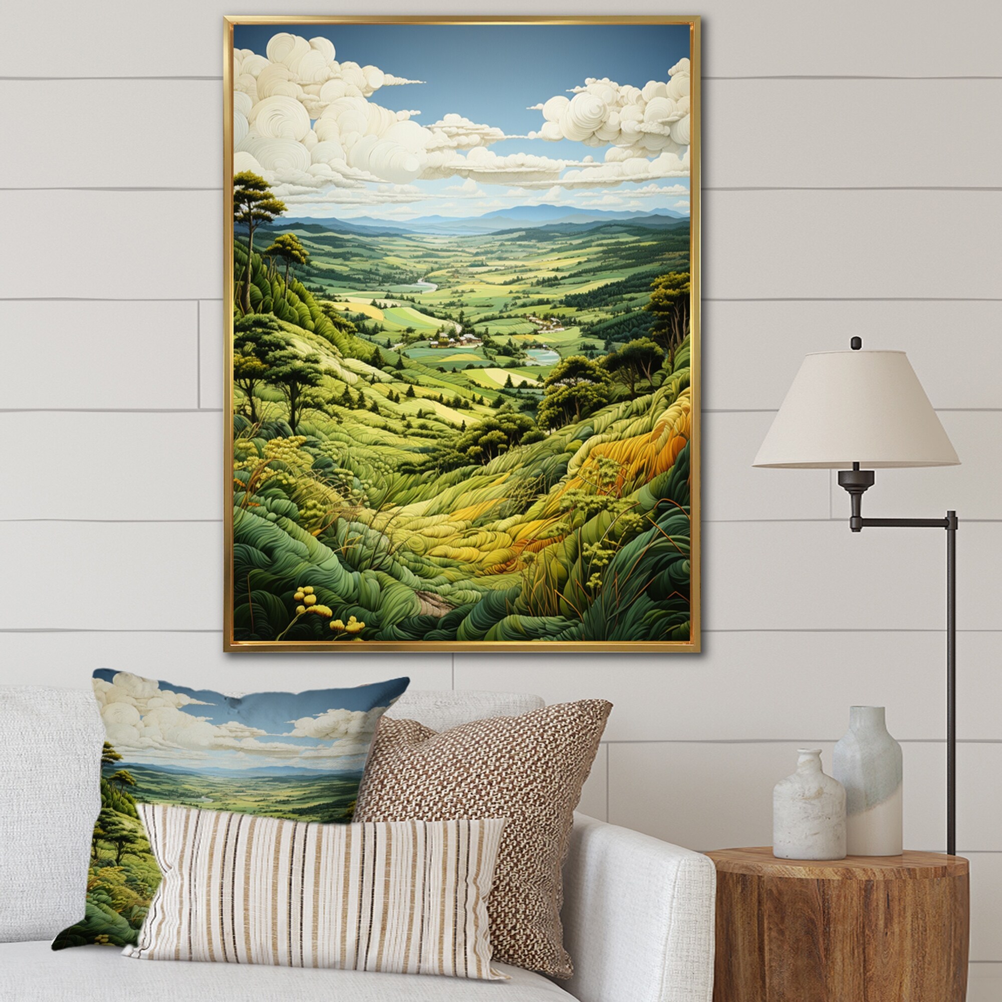 Designart "Countryside Verdant Valley I" Countryside Framed Wall Art Living Room