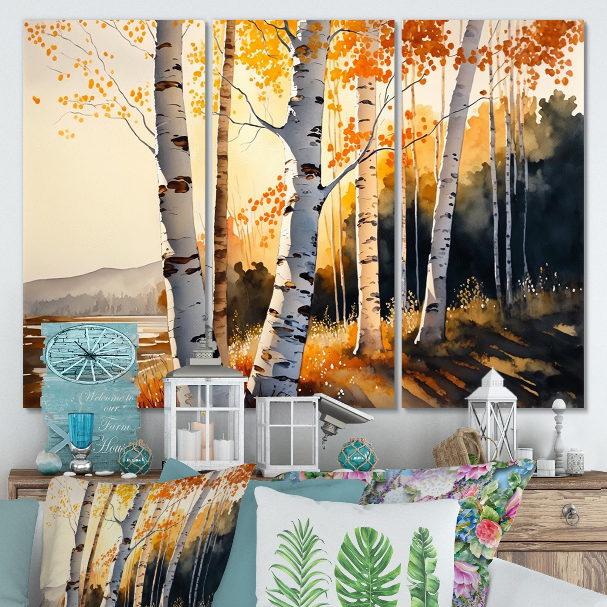 Designart "Birch Trees During Golden Hour By the Lakeside V" Landscape Forest Canvas Wall Art Print