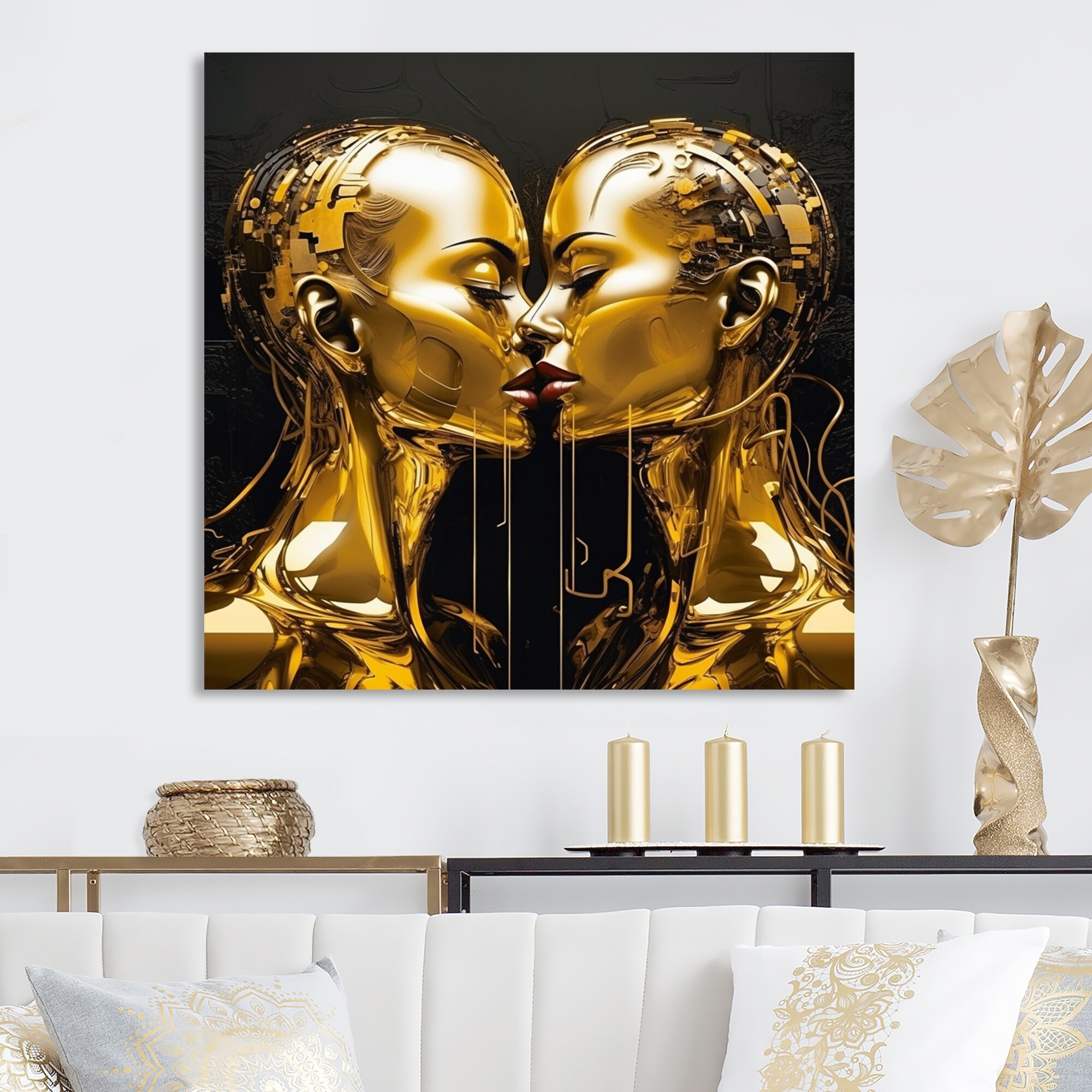 Designart "Acrylic Couple Kissing Iv" Abstract Marble Canvas Wall Art