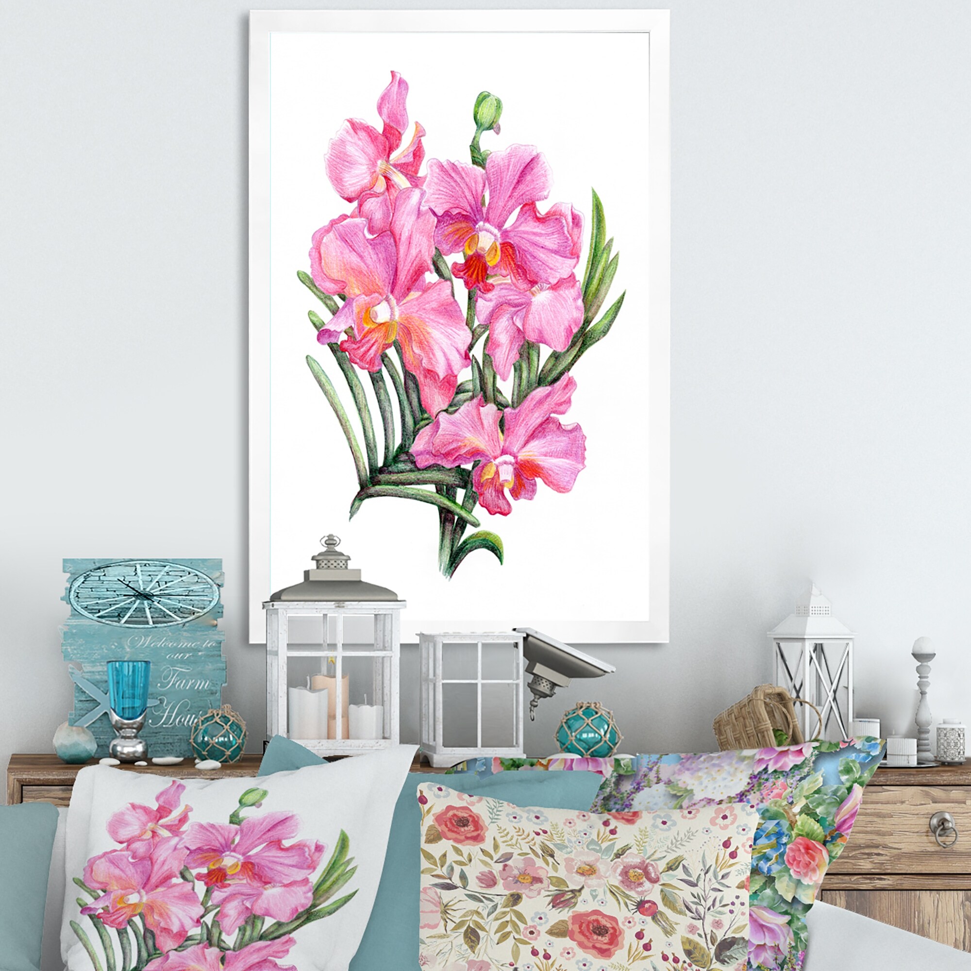Designart "Orchid Branch Art" Traditional Framed Wall Art