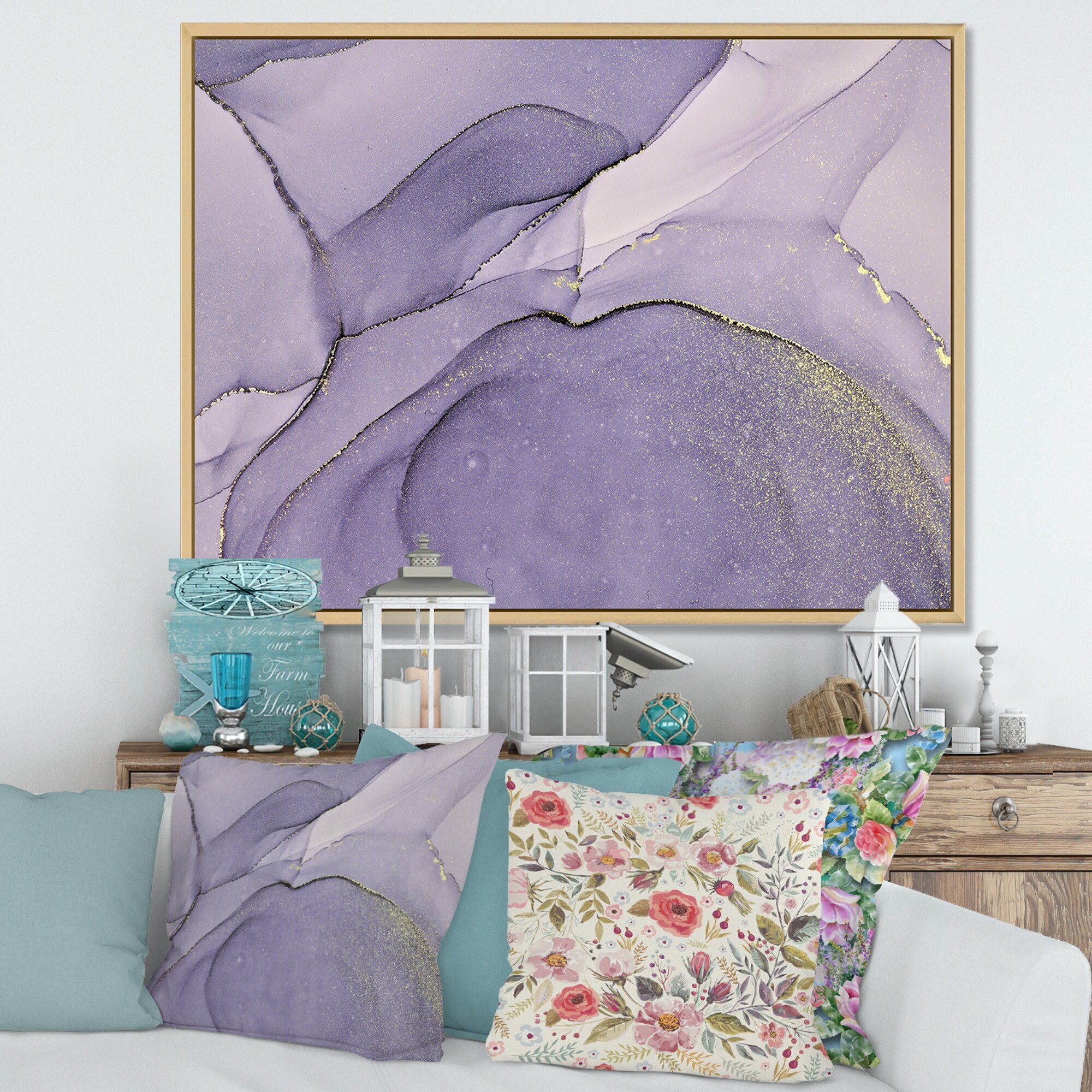 Designart "Rustic FLorals on Violet Background" Modern & Contemporary Framed Canvas Wall Art Print