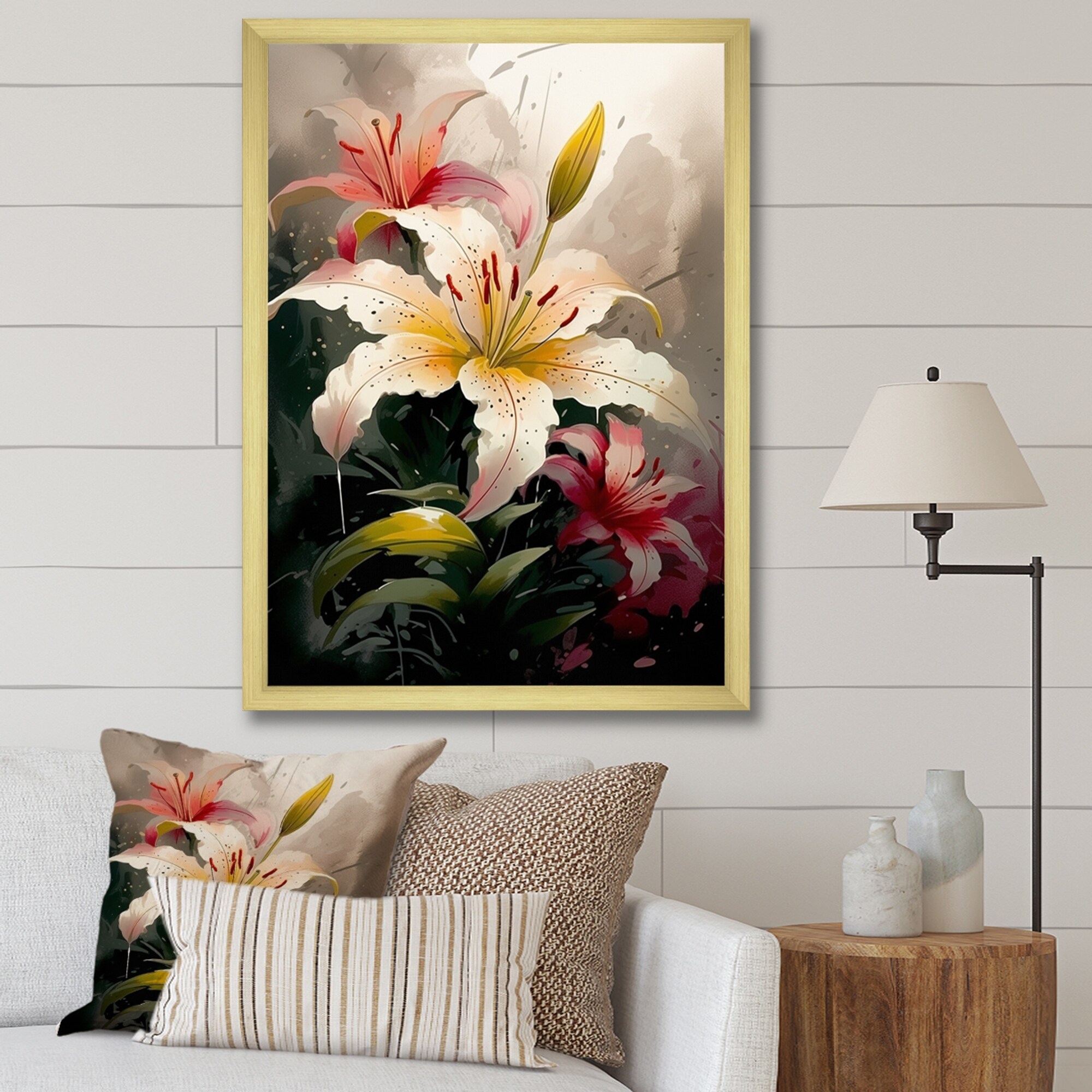 Designart "Cream Artful Lilies I" Floral Lily Framed Canvas Wall Art