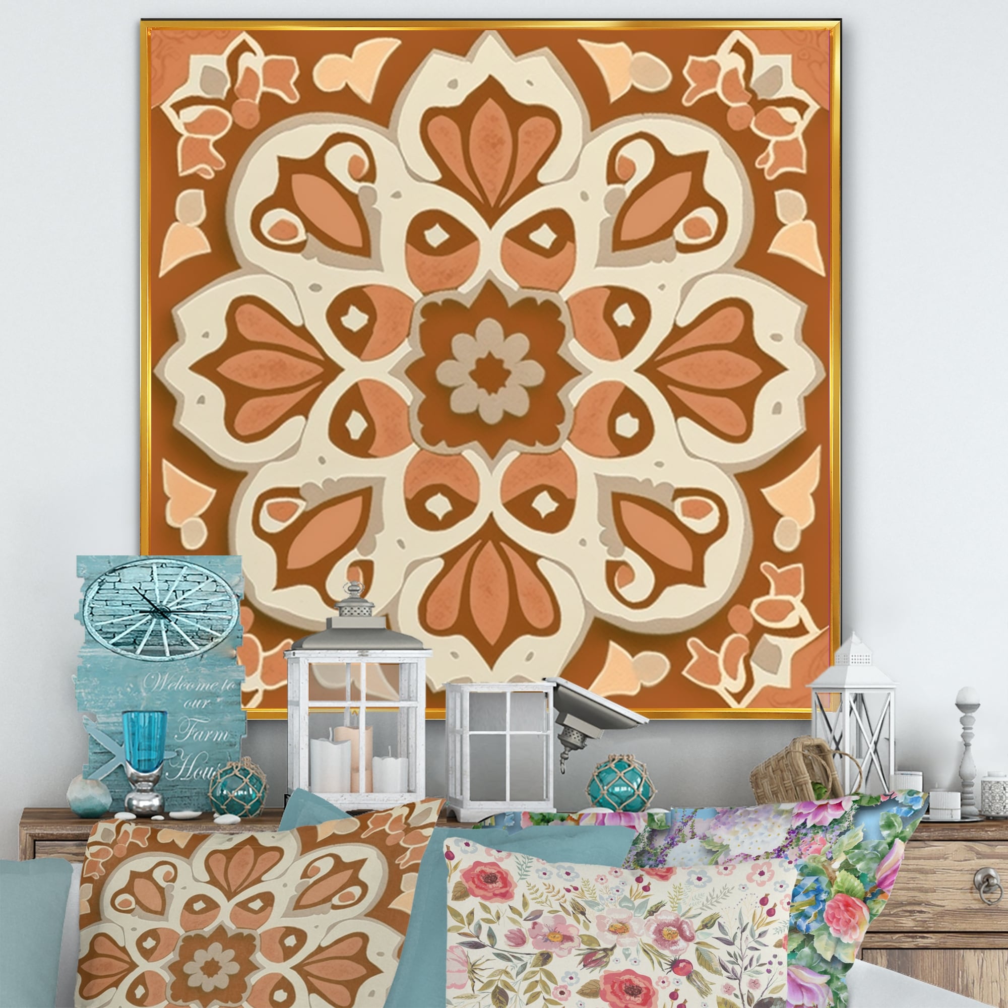 Designart "Moroccoan Tiles in Earth Tones II" Abstract Tile Framed Canvas Wall Art Print