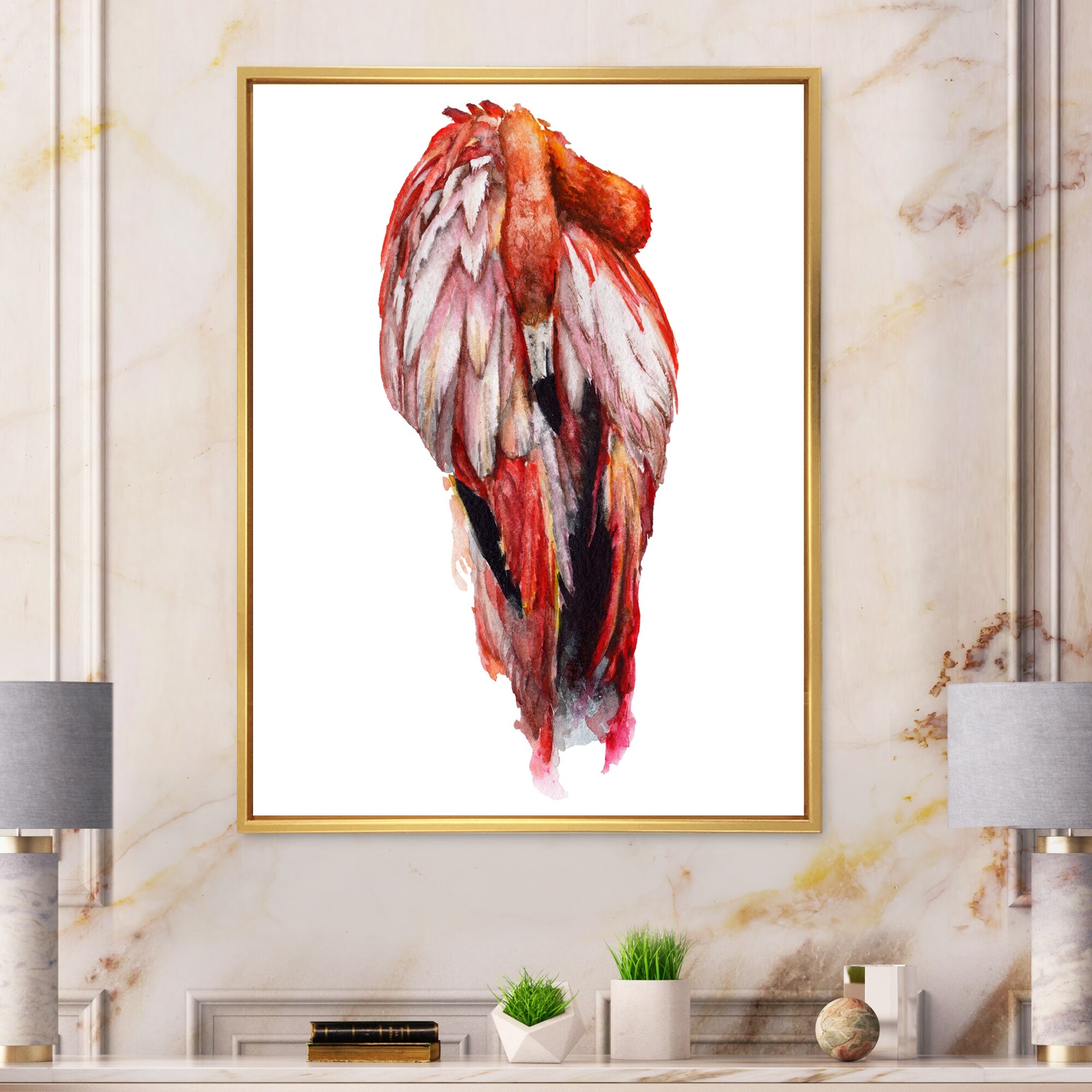 Designart "Sky Bird Flamingo in A Wildlife" Traditional Framed Canvas Wall Art Print